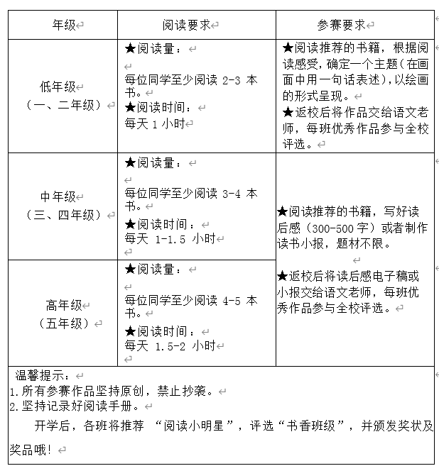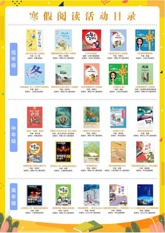 在这个寒假,学校为大家提供了丰富的假期阅读书目,供同学们选择。选择几本你心仪的书籍,充分感受读书的乐趣,完成《寒假阅读记录手册》,成为一个真正的“阅读小明星”吧!