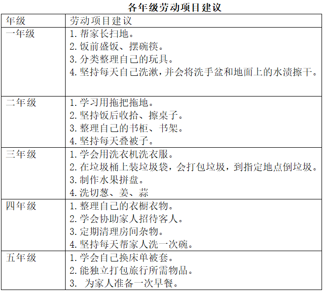 1.主动承担一些力所能及的家务劳动,按照劳动技能培养清单,培养劳动技能。