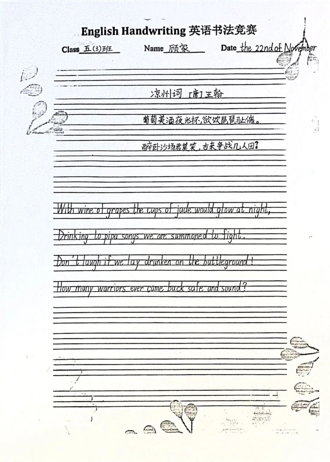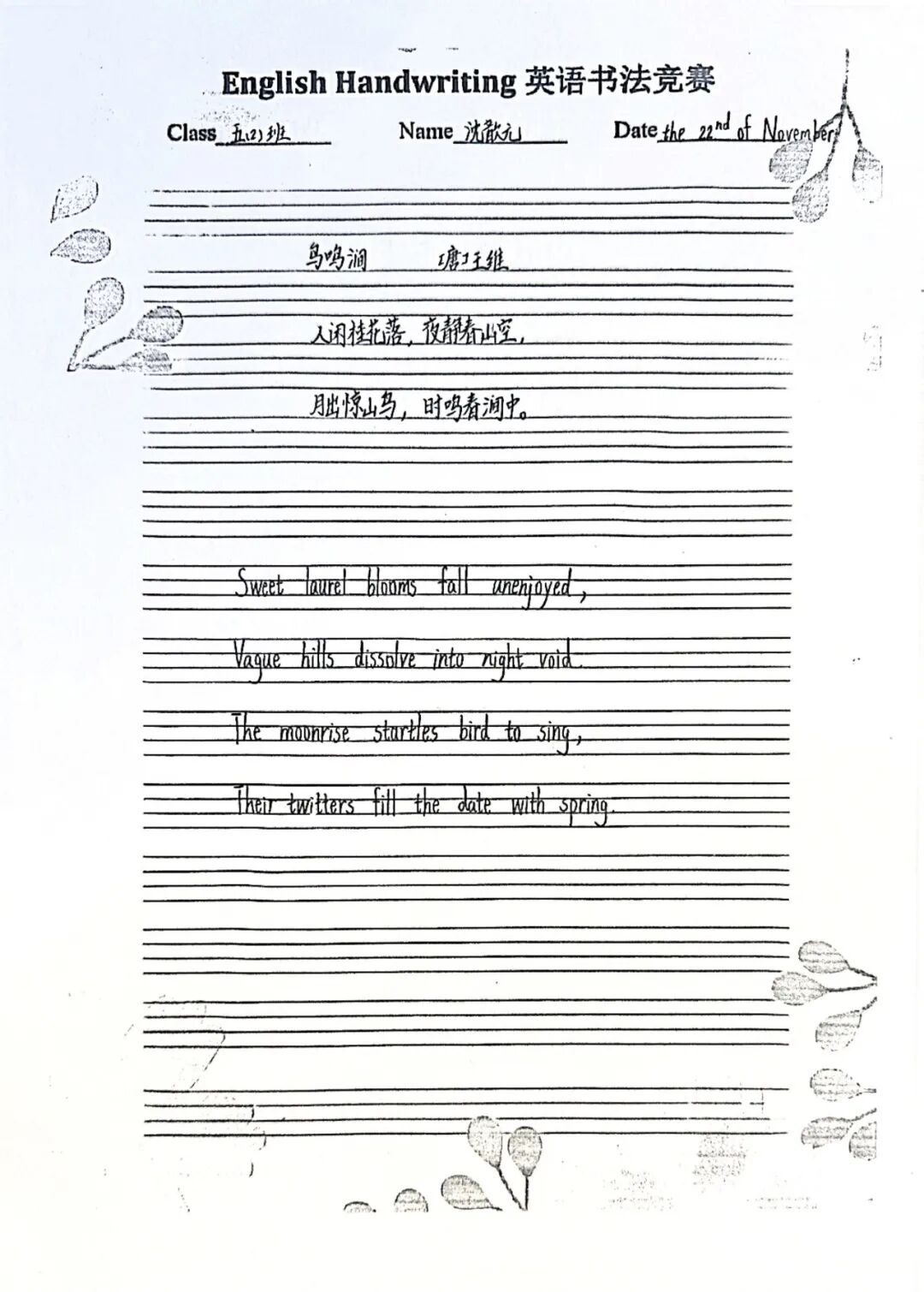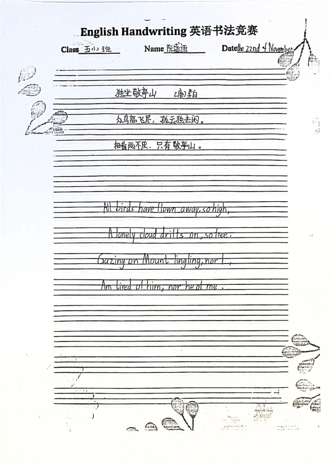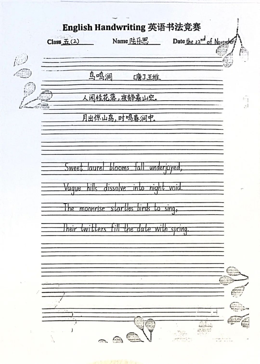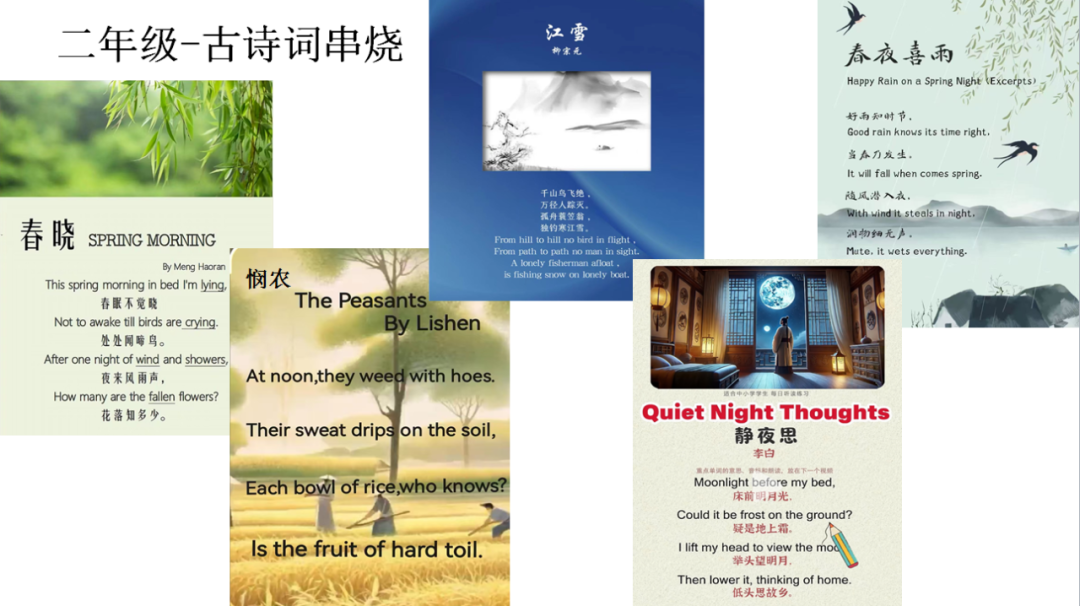 二年级通过学习英语版的古诗,体验古诗文化的韵味与魅力。
