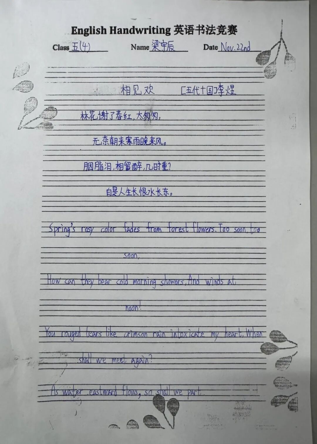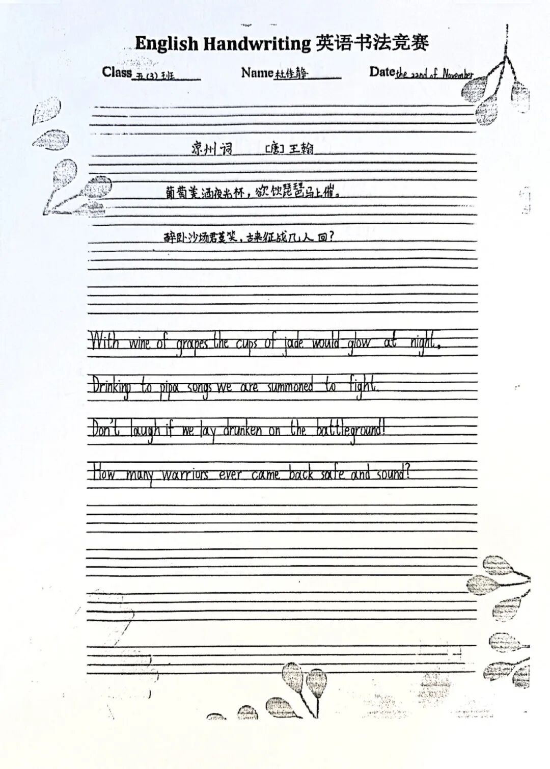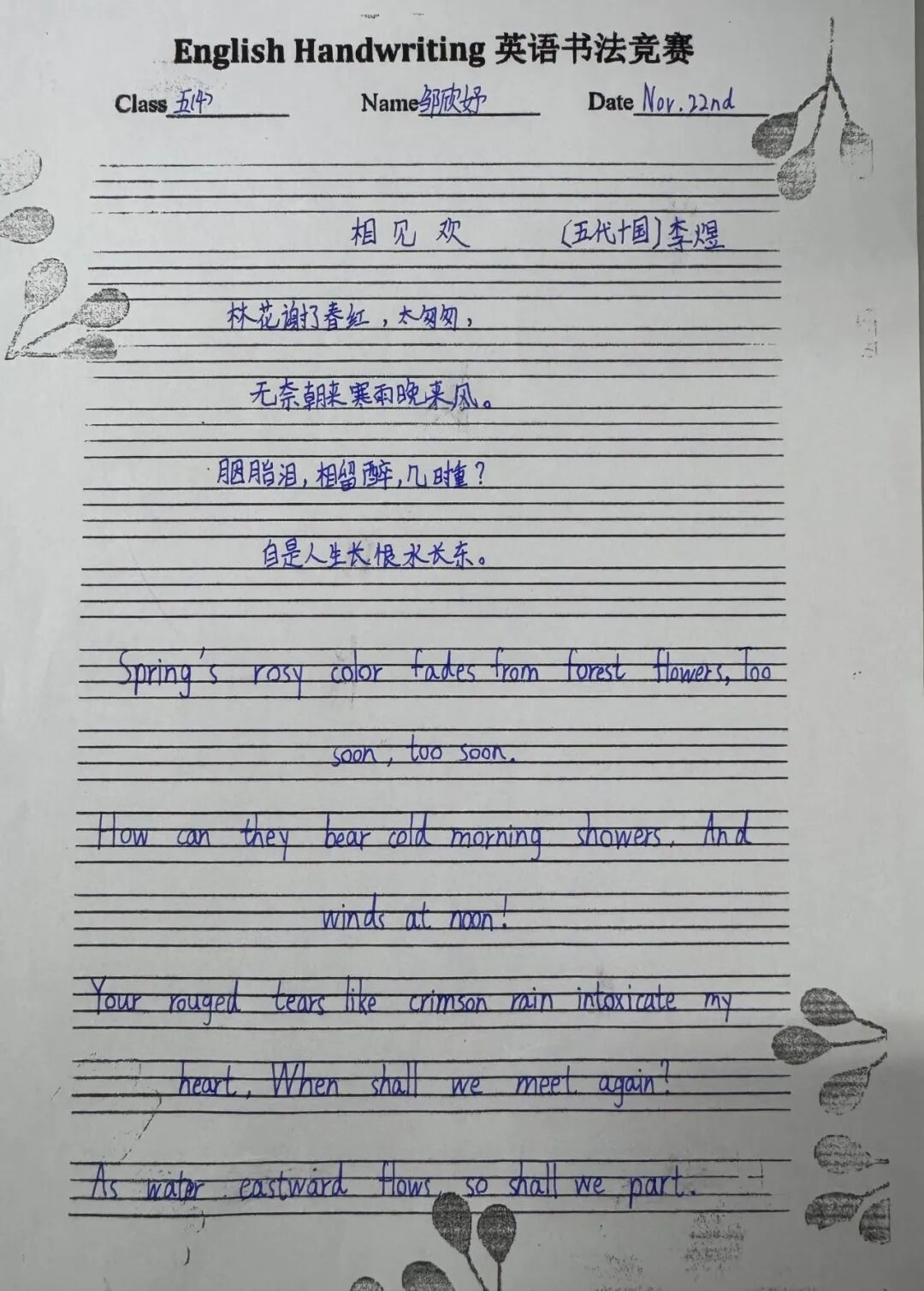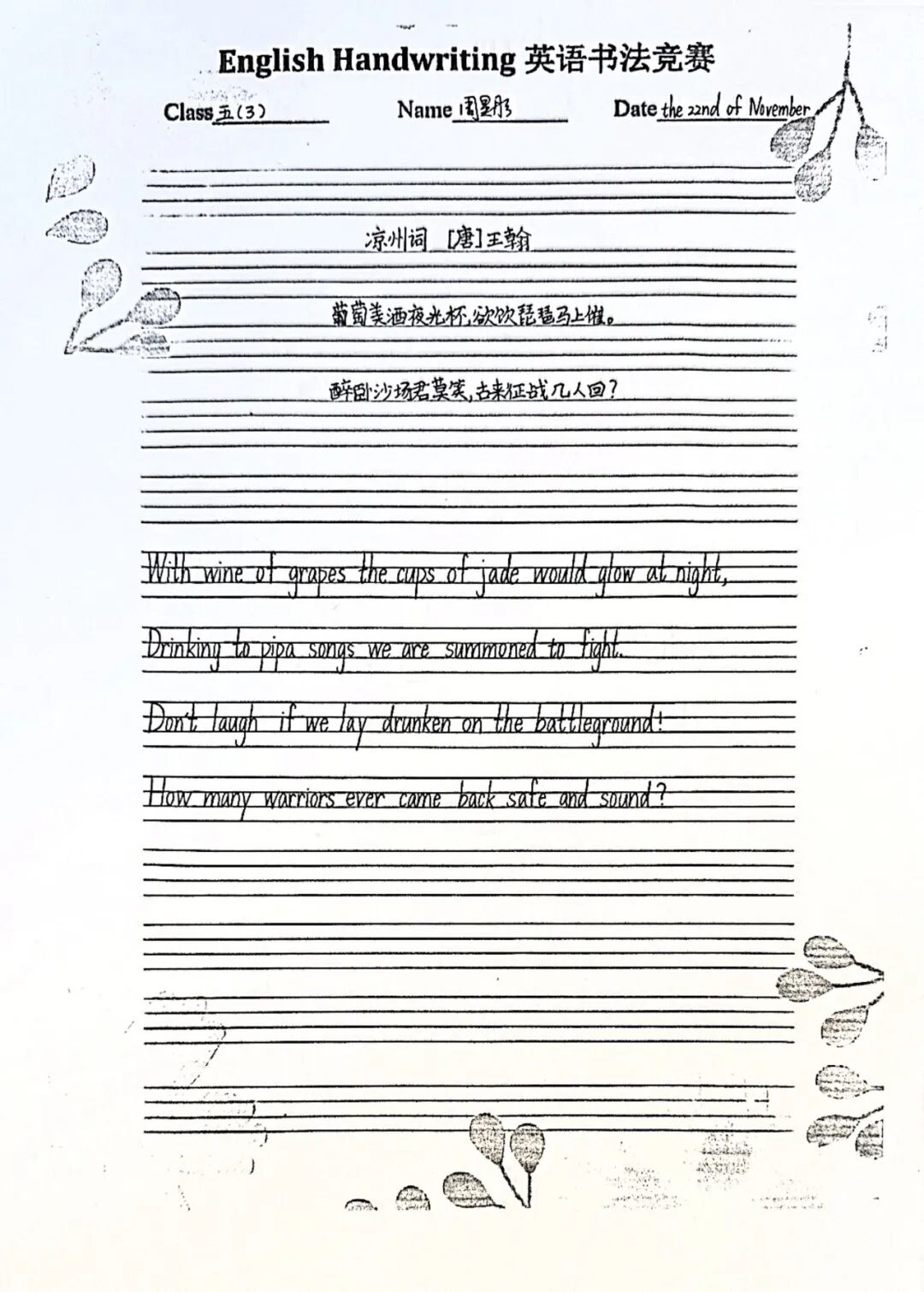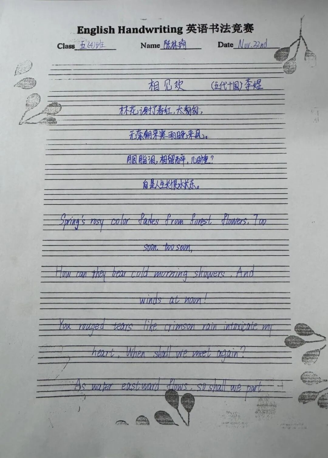 二年级通过学习英语版的古诗,体验古诗文化的韵味与魅力。