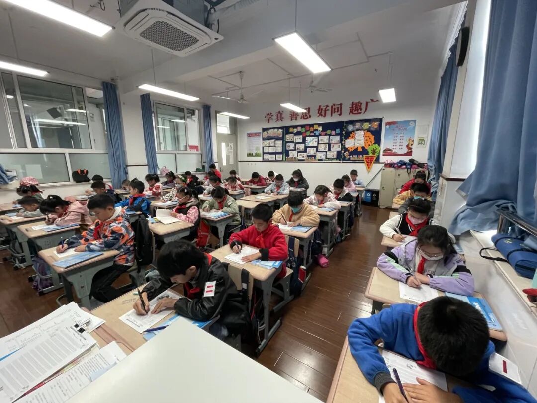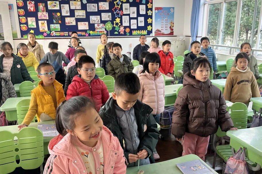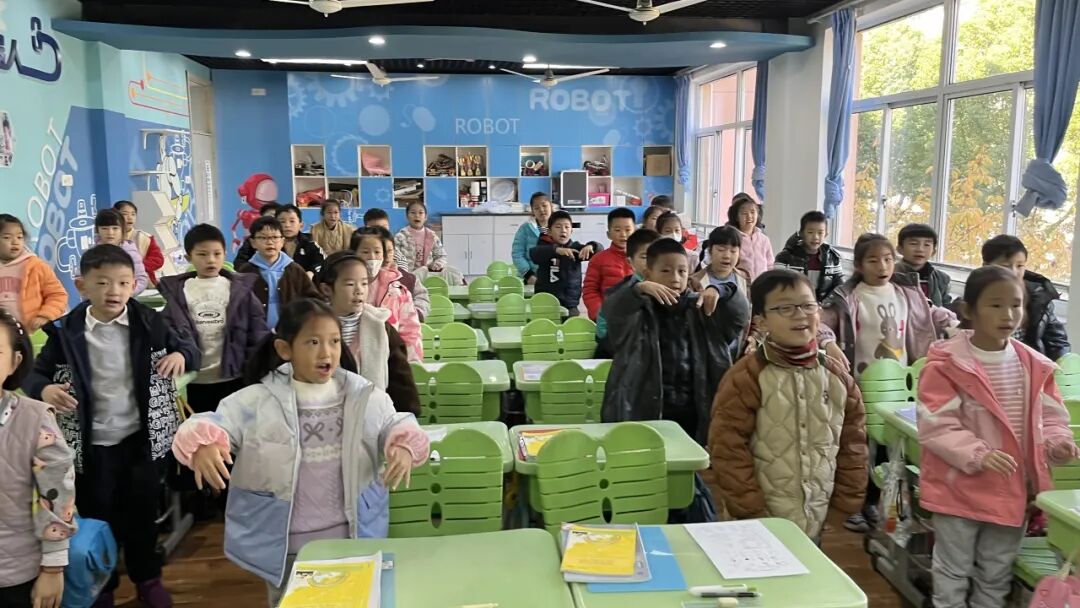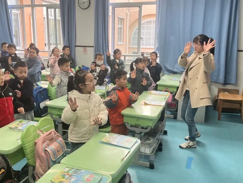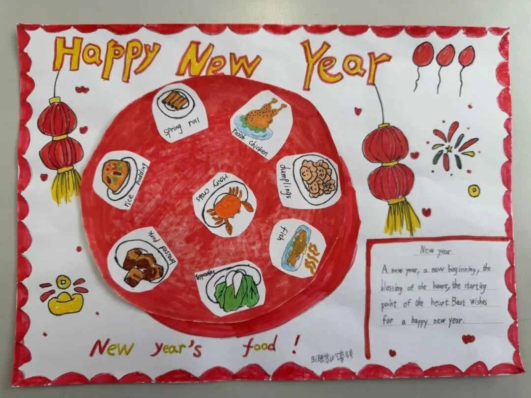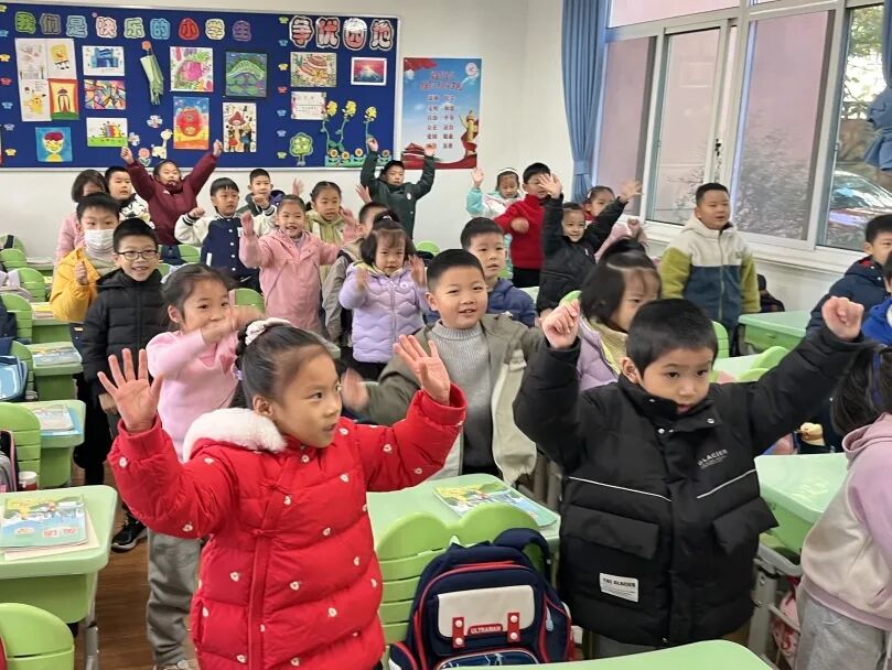 一年级以班级为单位,学唱春节主题儿歌《Happy Chinese New Year》,在欢快的旋律中感受中国年的浓郁氛围。