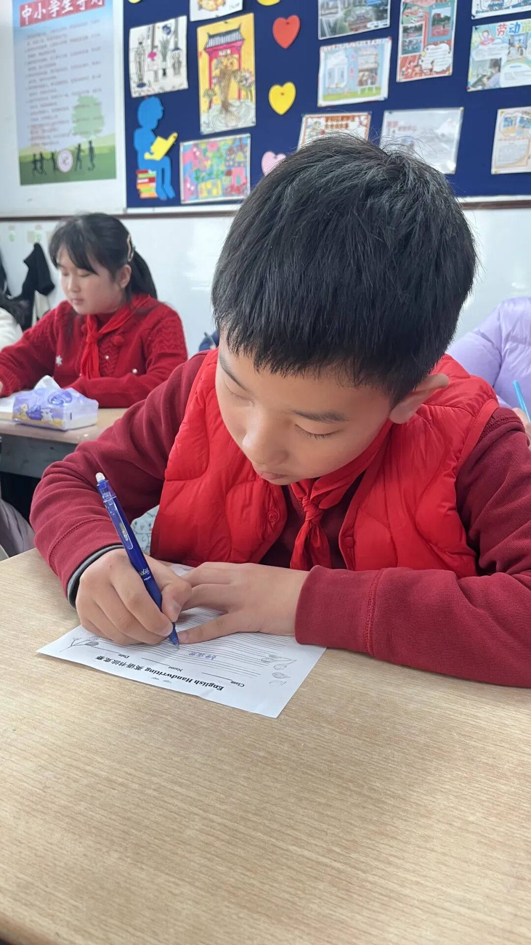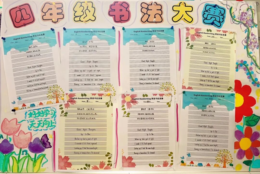 四、五年级的同学们进行了英语书写比赛、桌游比赛,同时他们以短视频的形式展现出对中国文化的热爱和民族自豪感。