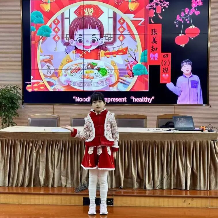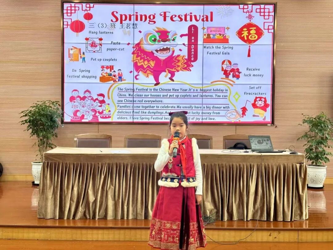 四年级同学们以英语脱口秀的方式生动讲述春节的历史和由来,让观众在欢笑中领略中国传统节日的魅力。