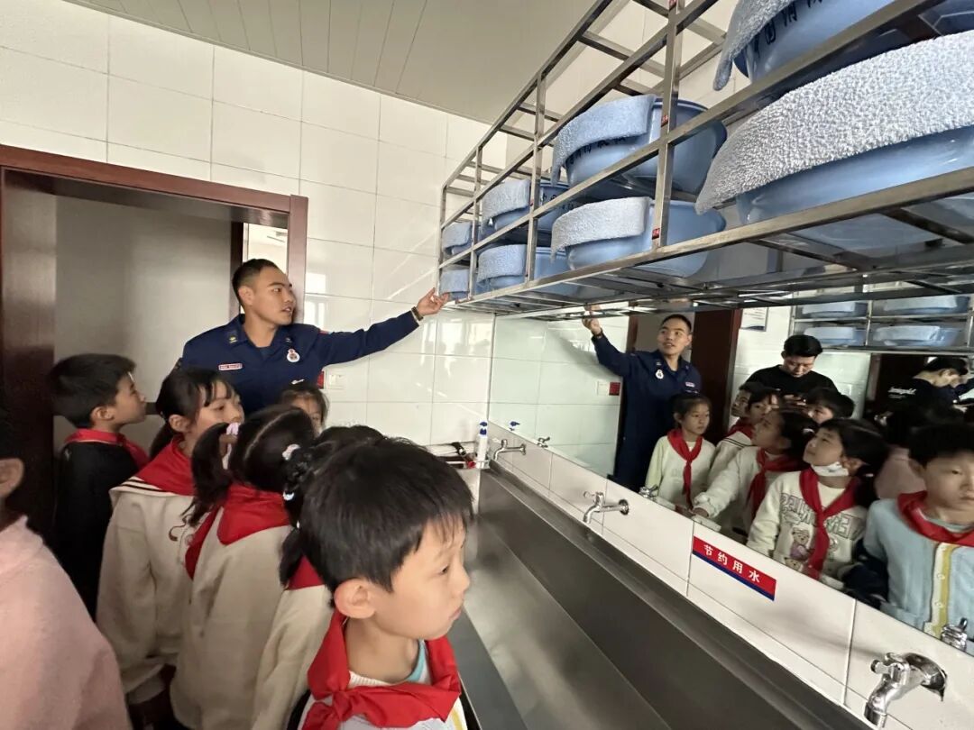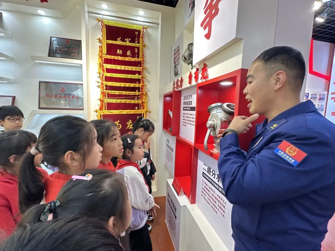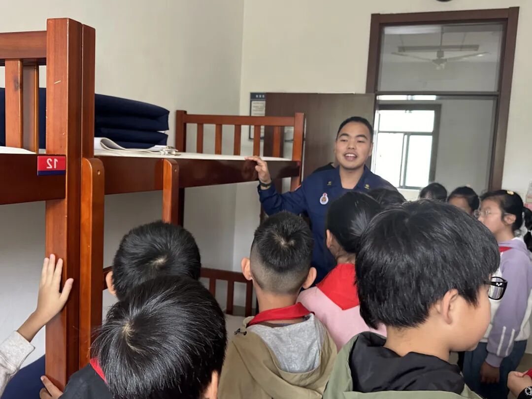 同学们参观了内务,走进消防中队的历史馆,里面一座座奖杯、一面面锦旗,不仅让学生感受到消防员官兵在生活上的“高要求,严纪律”,更体会到消防员所肩负的重要使命和责任。