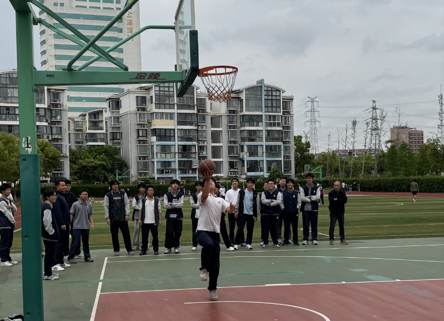 投篮大赛分为男子组与女子组比赛。男子组为三分投篮比赛,女子组为罚球线投篮比赛,参赛同学按既定顺序限时一分钟出手投篮,投进个数最多的同学获得投篮(三分)大赛冠军称号。