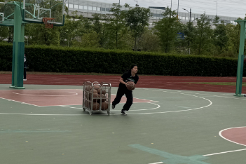 技巧大赛的规则相比投篮大赛更为苛刻,需要参赛同学以尽可能短的时间内完成上篮、运球绕杆、传球、投篮一系列任务。这意味着比赛中会出现诸多的变故,比赛结果也会有诸多的不确定性。