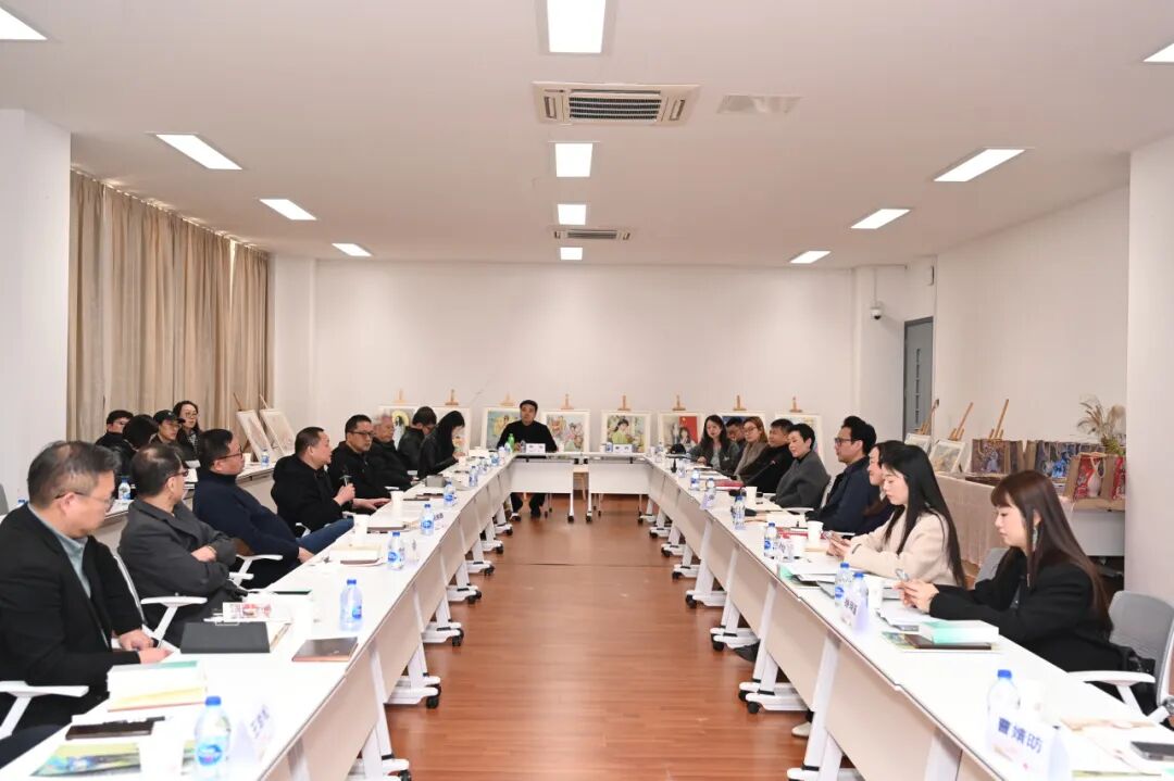 紧接着的月份牌年画艺术沙龙,由丁设先生主持,他首先阐述了创办此艺术沙龙的初衷与愿景,鼓励在场的每一位艺术家开放思想,勇于探索。随后,与会的各位艺术界精英围绕“如何在新时代背景下创新传承月份牌年画”这一主题,展开了热烈而深入的讨论。上海美协理事、上海师范大学美术学院常务副院长周朝晖教授,以其深厚的学术背景与实践经验,为讨论增添了理论深度;市非遗项目月份牌年画代表性传承人杨建明老师、韦献青老师,从专业的角度介绍了月份牌的技法与视觉特点,鼓励艺术家守正创新、守正拓展;上海美协插画连环画年画艺委会委员、长宁区海派年画代表性传承人姜修宜老师,作为我校月份牌特色选修课指导老师,从学生发展角度肯定了此次合作共建的未来,每一句话都饱含对艺术传承的热忱与期望;李擎昊校长,不仅分享了学校的教育理念,还提出了将传统文化融入现代教育的新颖思路;以及来自各高校、艺术界的专家学者,他们的到来不仅丰富了讨论的维度,也为未来的合作奠定了坚实的基础。