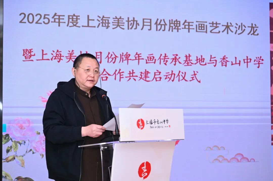 为进一步做好上海市非物质文化遗产代表性项目月份牌年画的传承保护工作,探索打造一支年龄结构更加合理、专业背景更加丰富的创作队伍,推动“月份牌年画”拓展创作的媒介样式,淬炼经典的图式语言,提高创作的艺术水准,加快融入上海美术的整体发展进程重新擦亮“海派文化”靓丽名片,上海市美术家协会在上海市香山中学举办2025年度月份牌年画艺术沙龙(第一期),同期启动上海市美术家协会月份牌年画传承基地与上海市香山中学的合作共建。