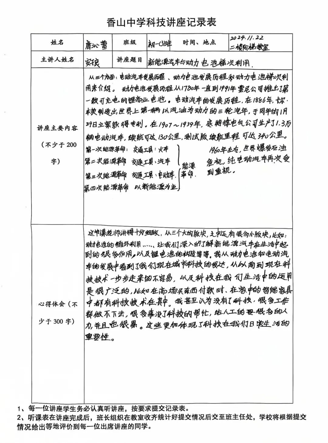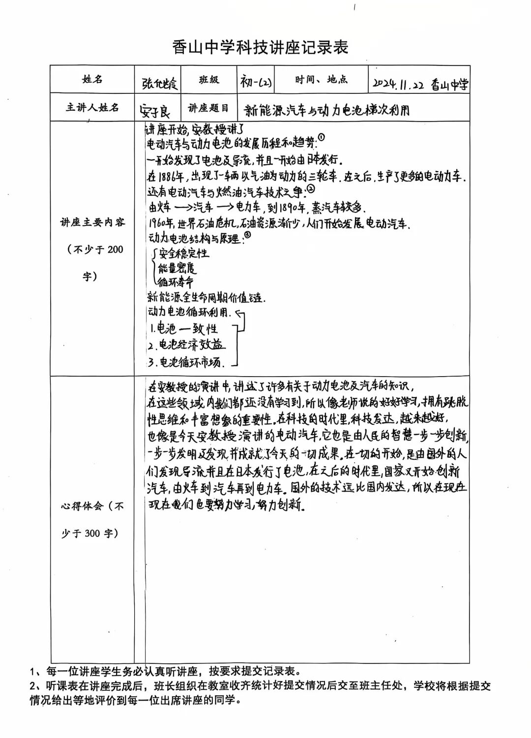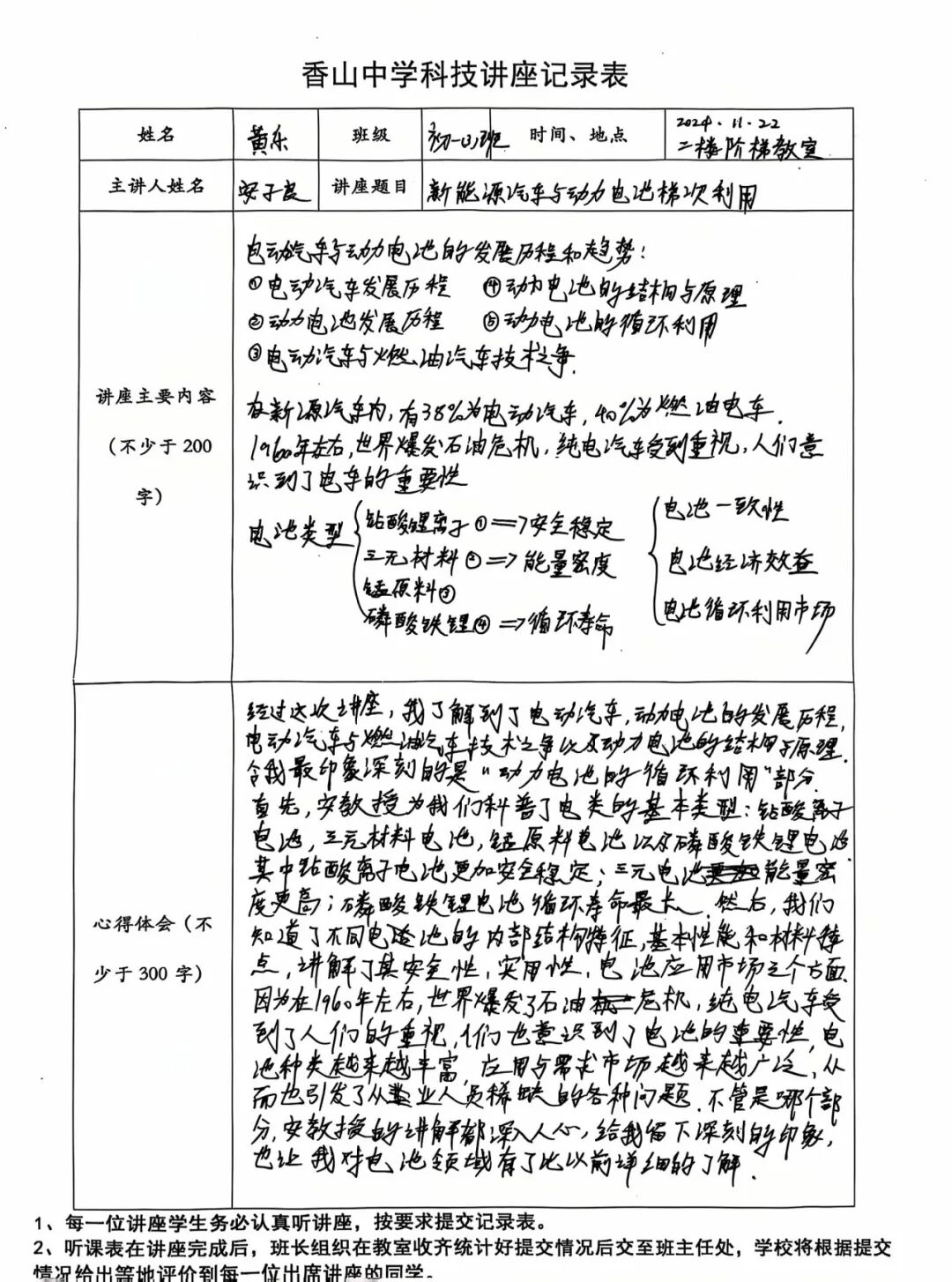 经过这次讲座,我深刻体会到,新能源汽车与动力电池的利用,不仅是技术进步的体现,更是人类对环保责任的体现。我将继续关注和学习这一领域的知识和技术,为推动绿色出行贡献自己的一份力量。