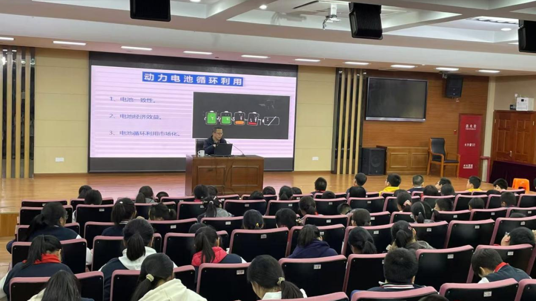 2024年11月22日,我校预备和初一年级全体学生共同聆听了本学期第二次科学大讲堂。本次讲堂的主讲人是安子良教授,他给我们讲述了有关于电动汽车与动力电池的知识。