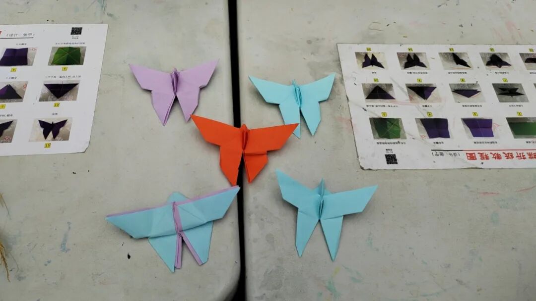 在农场春游的最后环节,学生们学习折纸蝴蝶。这不仅是一种手工艺术,更是一次放松心灵的活动。通过折纸蝴蝶,孩子们培养了动手能力和创造力,同时在彩纸间找到了大自然的灵感。