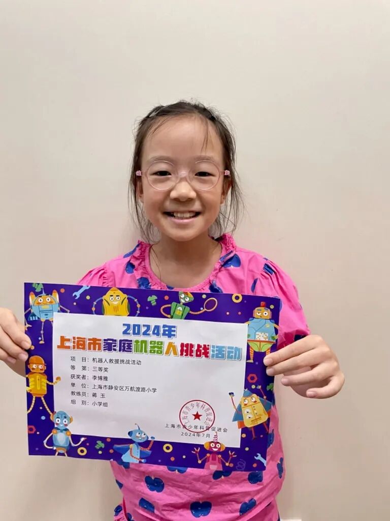 多名小小万参加了2024年上海市家庭机器人挑战活动的“机器人救援比赛”,小选手们操控着他们的机器人,穿越障碍,完成救援任务,每一个动作都凝聚了他们的心血和汗水。特别值得一提的是,我们的小选手们在这次比赛中获得了令人瞩目的成绩。