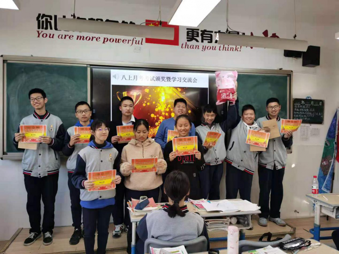 每一位同学都朝着“正直,善良,勤奋,自律”的班训不断向前,成为更好的自己。班级由学习部、卫生部、纪检部、综合部四大部门协助老师开展各项工作并进行管理,给整个班级营造了良好的学习氛围,各项活动也开展得有声有色。同学们在平时的学习生活中,秉持“不抛弃,不放弃”的信念。