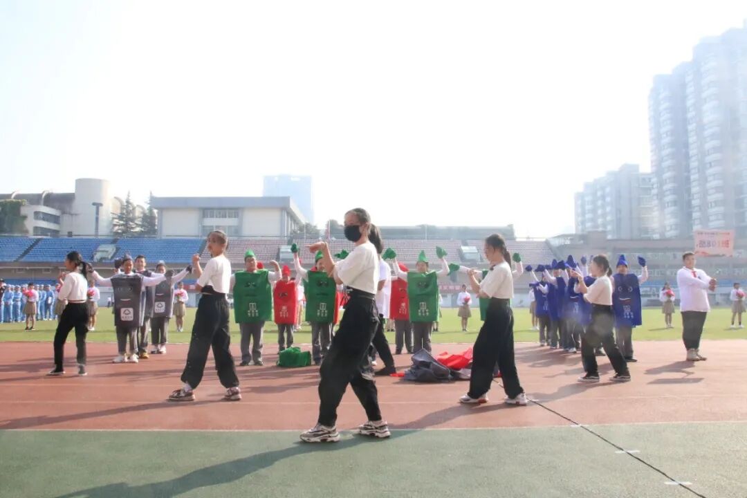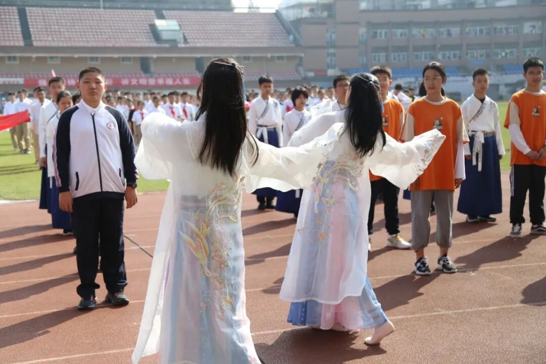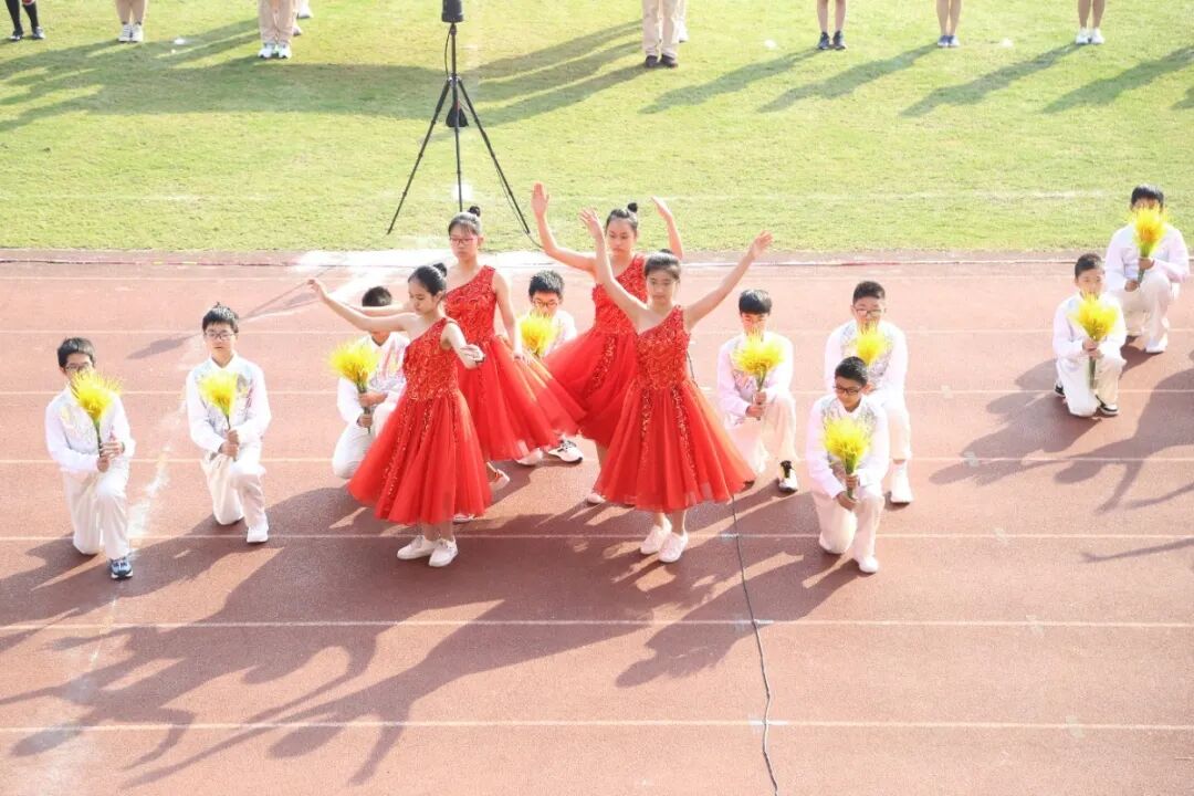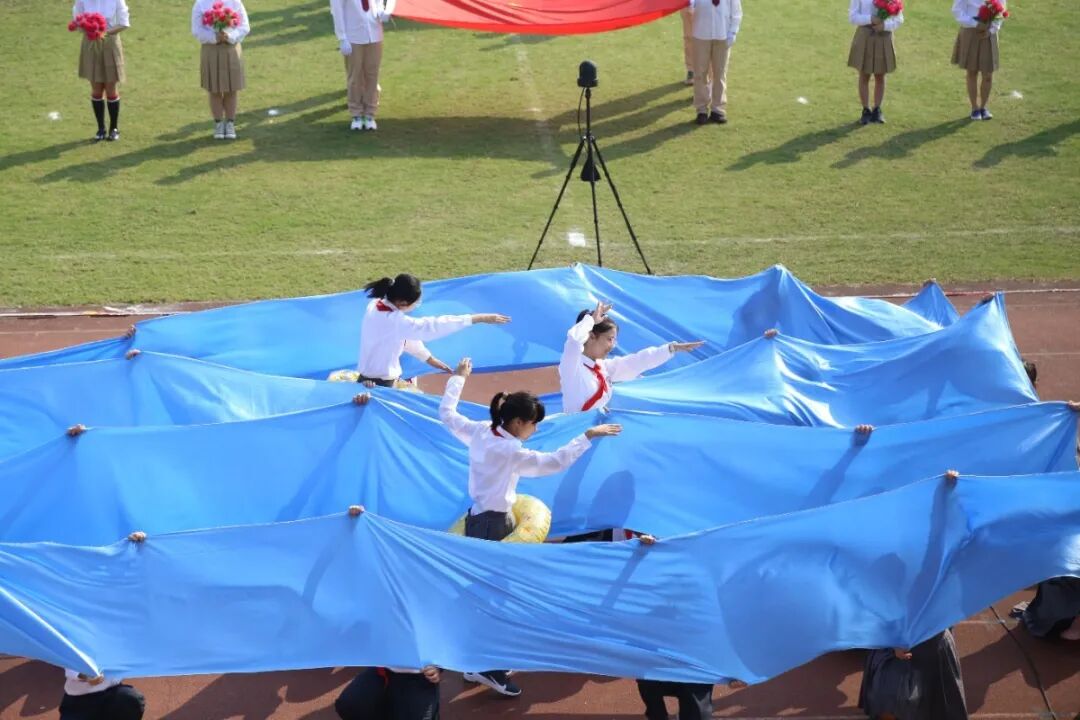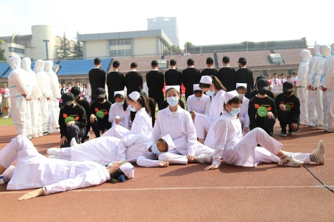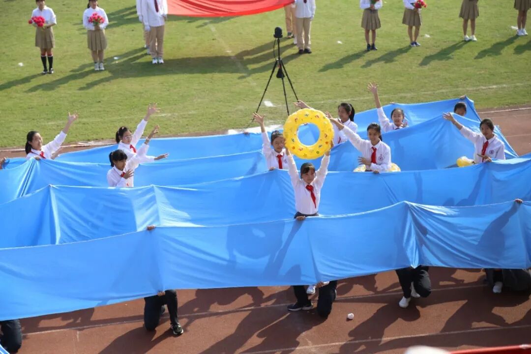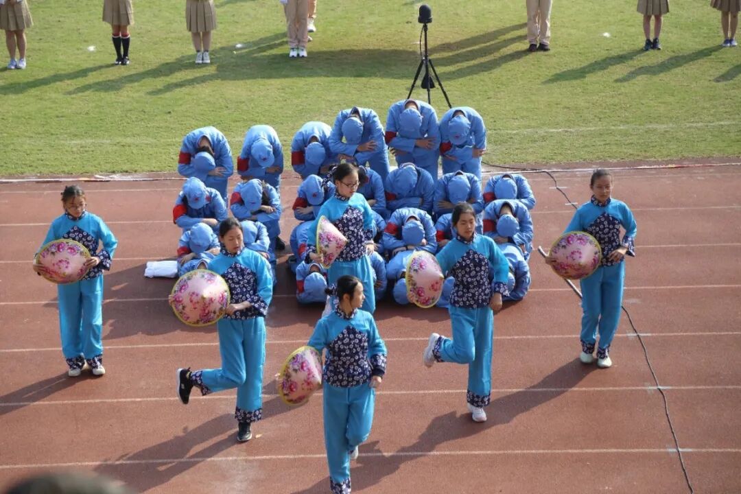 运动会的开幕式,从不缺少师生们丰富的想象力与创造力。学生们入场式形式多样,运动场成了才艺展示的阳光舞台,各班师生精心准备了器乐合奏、舞蹈走秀、微型课本剧等多种才艺表演。