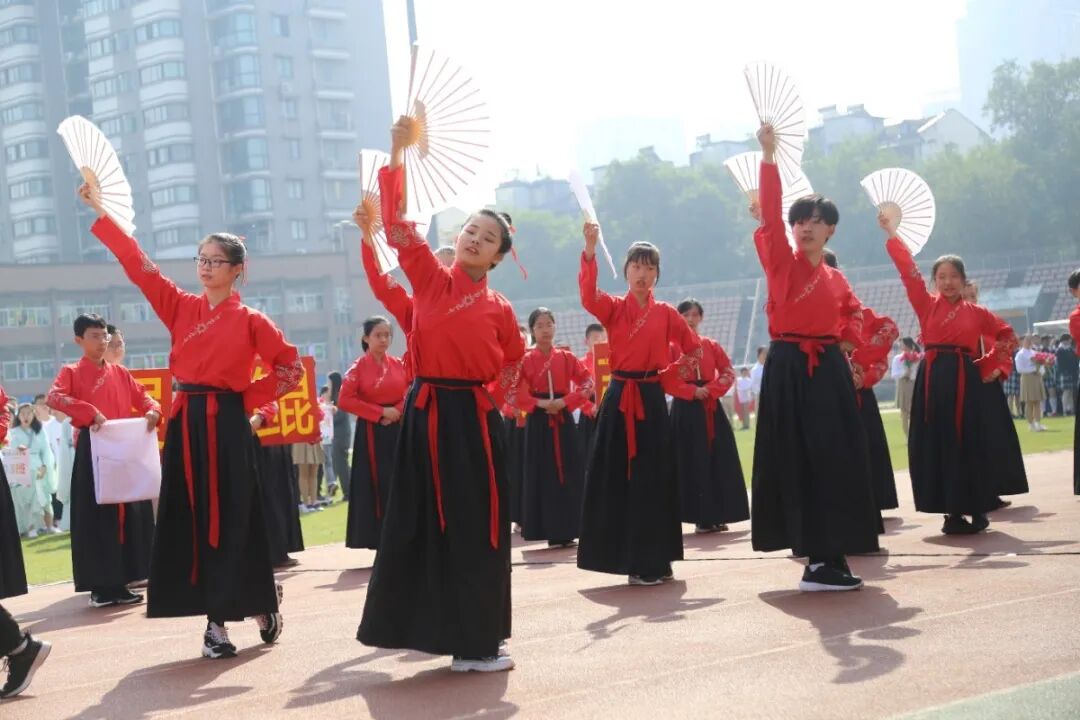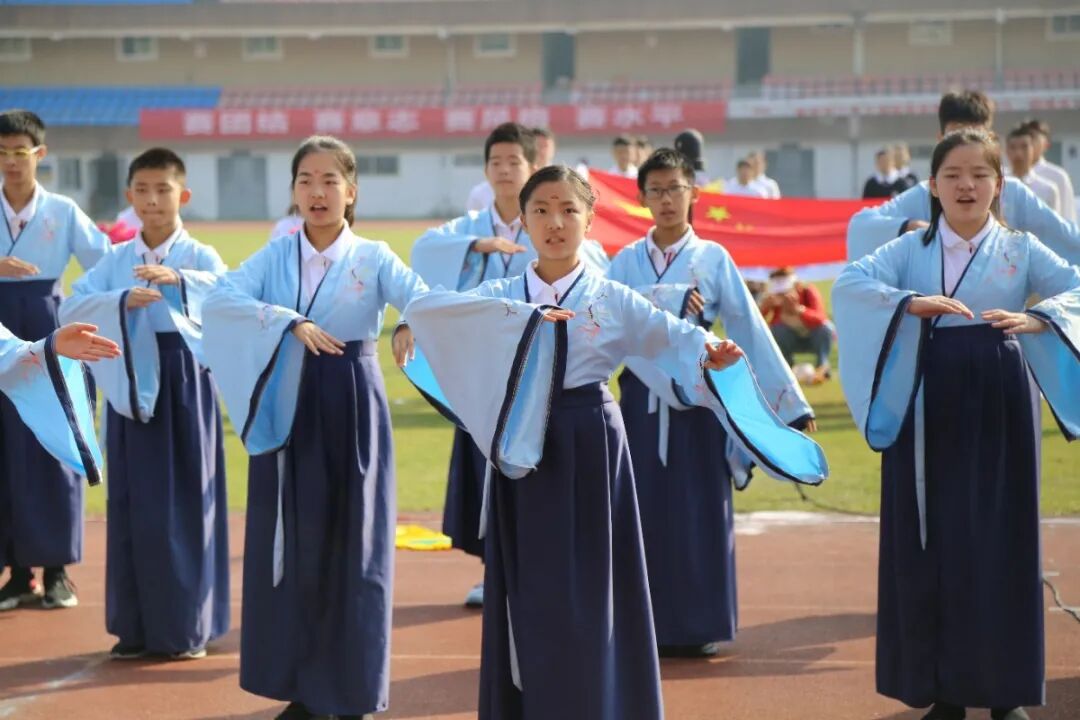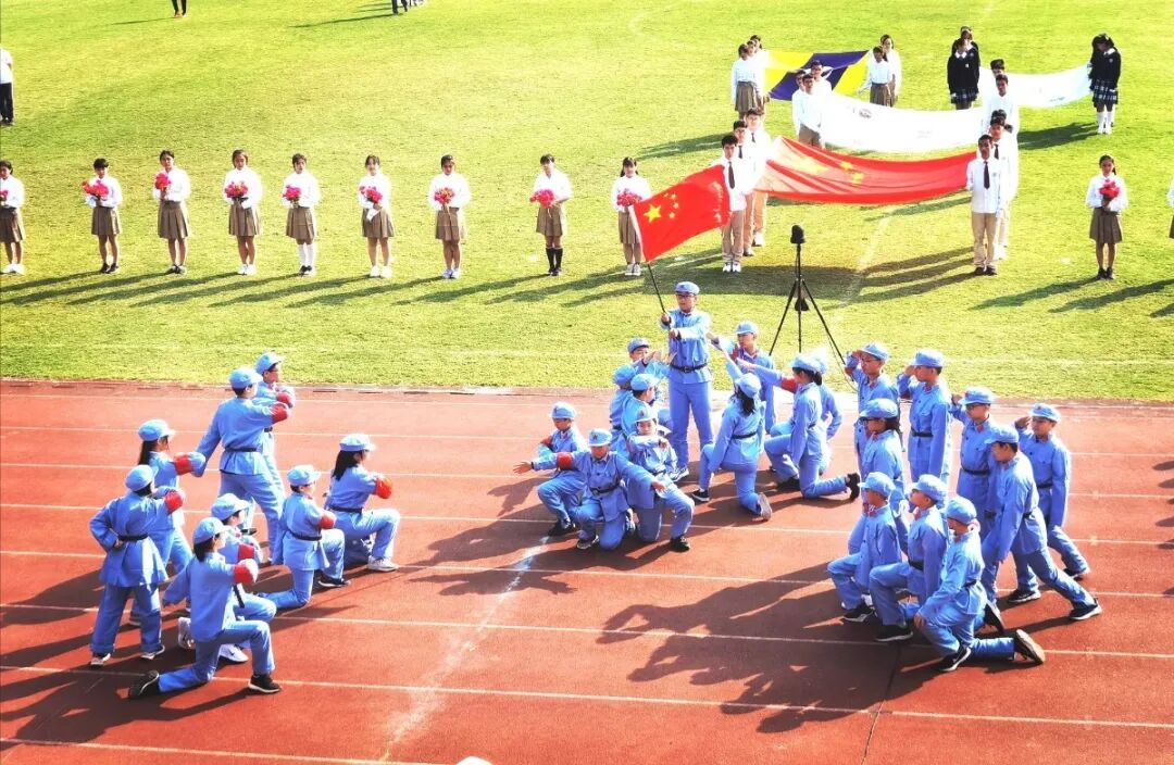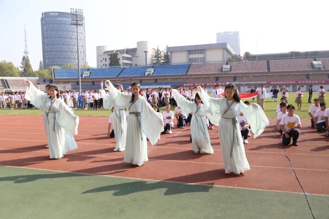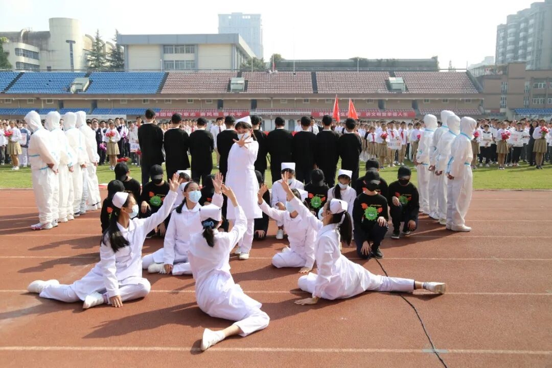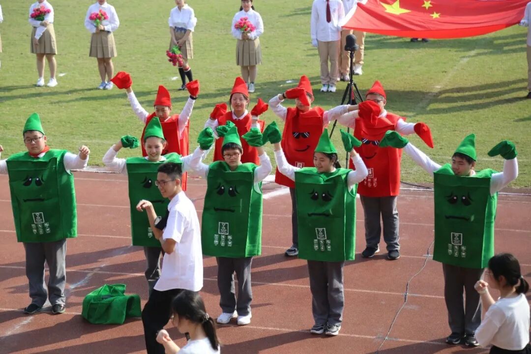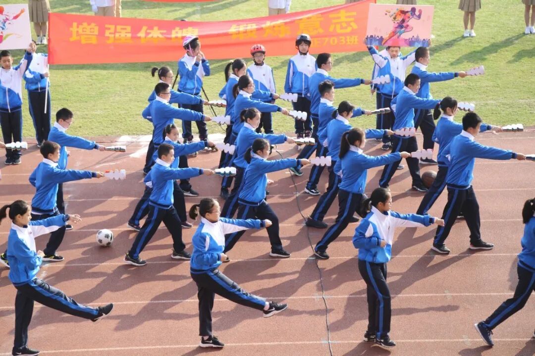 运动会的开幕式,从不缺少师生们丰富的想象力与创造力。学生们入场式形式多样,运动场成了才艺展示的阳光舞台,各班师生精心准备了器乐合奏、舞蹈走秀、微型课本剧等多种才艺表演。