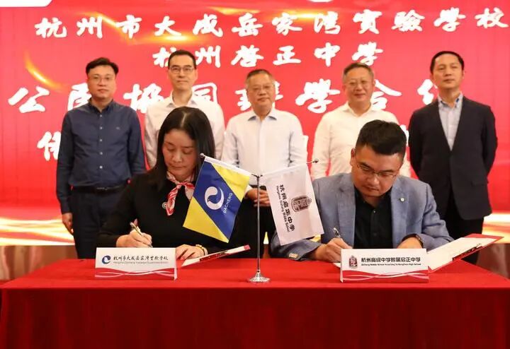 前天,在大成岳家湾实验学校25周年校庆之际,杭州启正中学与大成岳家湾实验学校正式结为“公民协同发展共同体”。在杭州市教育局副局长蒋峰,下城区副区长包晓东,下城区教育局局长黄伟,杭州高级中学校长蔡小雄,浙江开放教育集团董事长钱渭南的见证下,杭州启正中学执行校长林学省应邀与大成岳家湾实验学校校长鲍争志郑重签订合作协议,由此,掀开了两校合作的崭新一页。