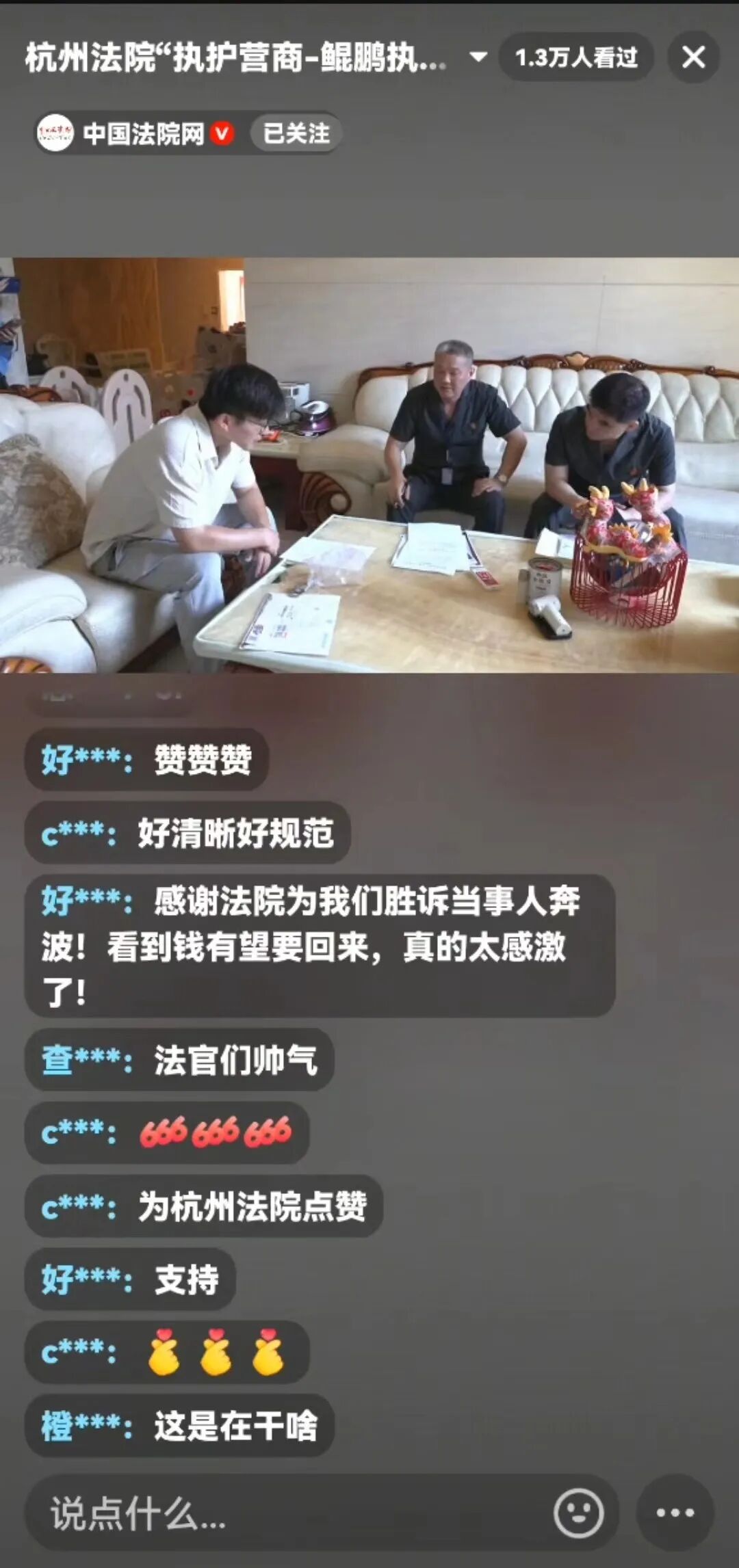 “执法直播既是生动的普法课堂,也是广泛的监督窗口,让广大网友在见证阳光执行、文明执法的同时,也进一步凝聚知法守法、共建诚信社会的共识。杭州法院本次集中执行行动,既是及时兑现胜诉权益的有效手段,更是震慑失信被执行人、维护司法权威的具体实践,为杭州打造营商环境最优城市提供有力的司法保障。”在观看完本次执行直播后,杭州市人大代表过灵芝感慨道。