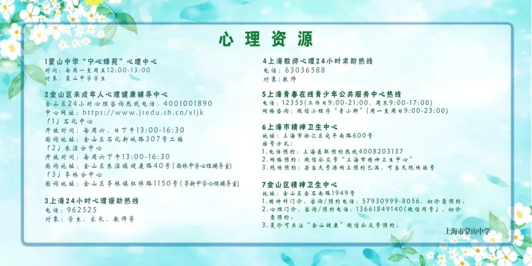 同学们遇到心理上的烦恼,不仅可以寻求班主任、老师的帮助,还可以通过以下渠道寻求专业帮助。