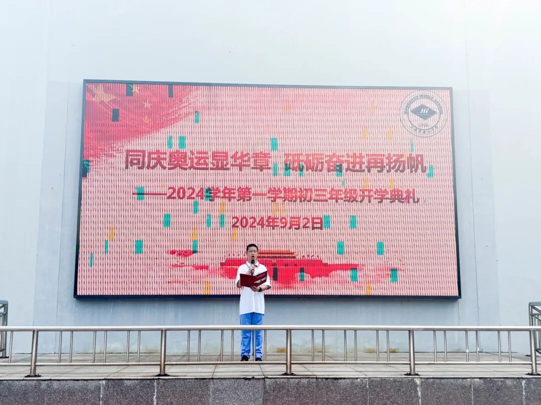 9月2日,蒙山中学初三年级全体师生齐聚南校操场,举行“同庆奥运显华章,砥砺奋进再扬帆”开学典礼。