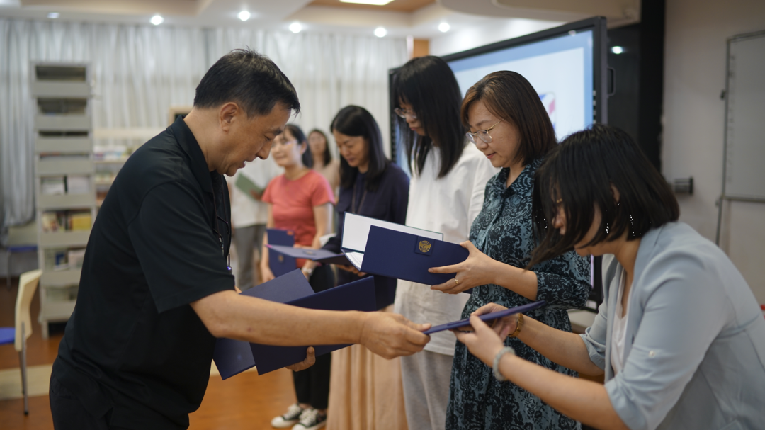 精彩的表演结束后,于基泰校长为今年的“优秀园丁”颁发奖状。他们有精彩的课堂,有趣的灵魂,有爱的信念,还有心怀责任的担当。