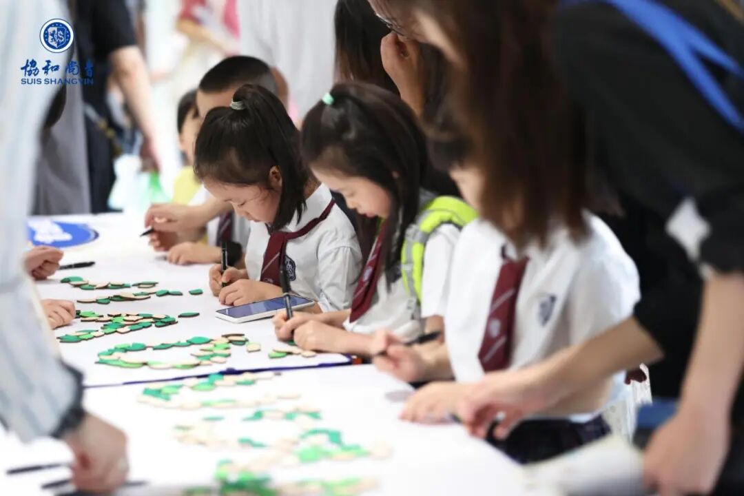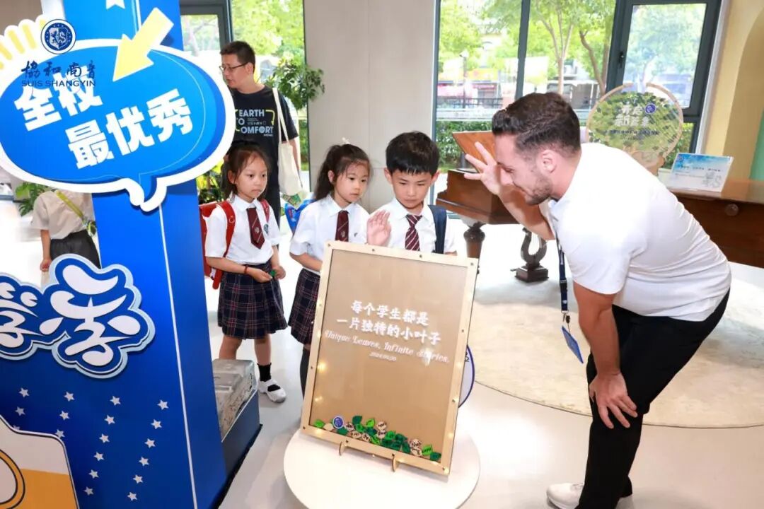 孩子们亲手写下自己的名字,家长们和浦江校区的德育主管Mr.Olly一起将写有名字的“小叶子”投进画框。当这些“小叶子”逐渐汇聚成一幅生机勃勃的画时,整个签到处都洋溢着温馨与希望。这幅画不仅是学生们自我的展示,更是学校、家庭和社会共同努力、携手育人的美好见证。它告诉我们,每个孩子都是值得被珍视的,只要我们能够给予足够的关爱、鼓励和支持,他们就会像这片片叶子一样,茁壮成长,最终汇聚成一片茂密的森林,为这个世界带来更多的精彩!