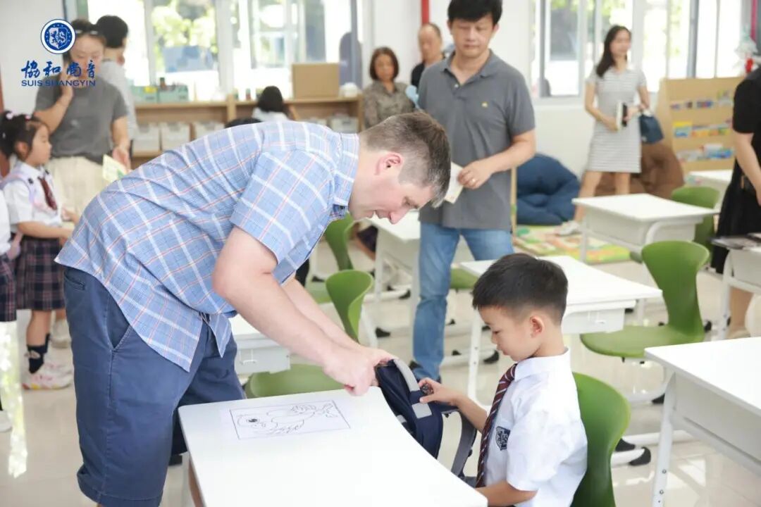 入校第一站,孩子们和家长一起来到了签到处。在尚音,“每个学生都是一片独特的小叶子”,他们都是世界上独一无二的存在,各自拥有不同的色彩、形状和生命力,共同构成了这个多彩而充满活力的世界。