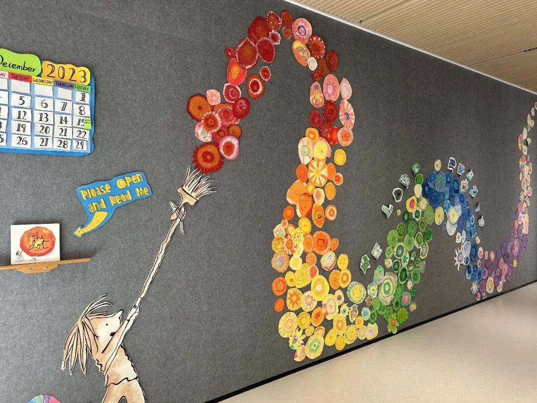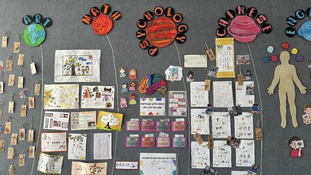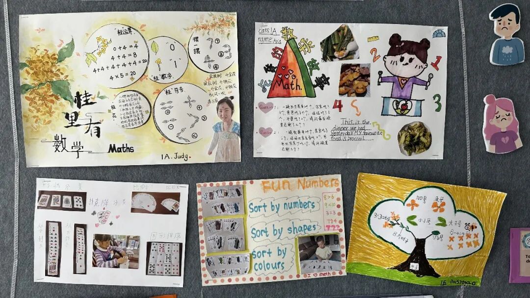墙上的其他作品也充分展示了尚音“艺术强校”的特色,而且跨学科主题式学习无处不在,比如用“桂花”来学习数学你敢信?