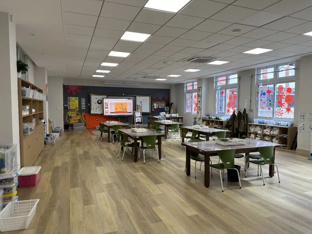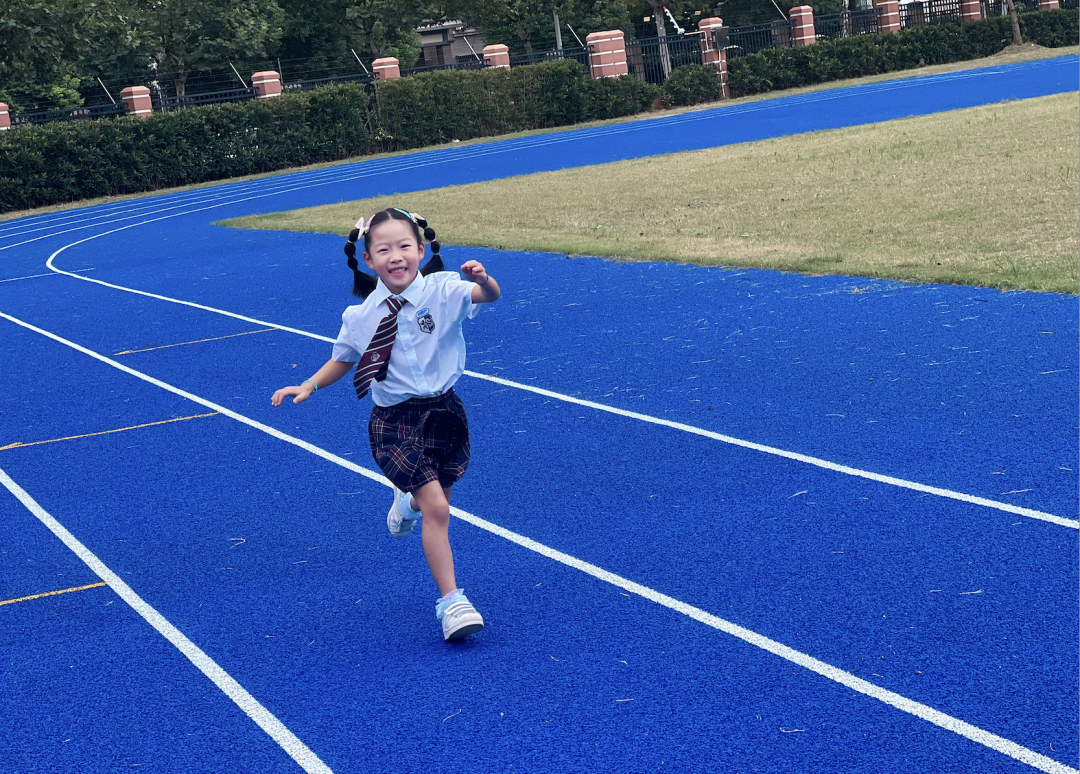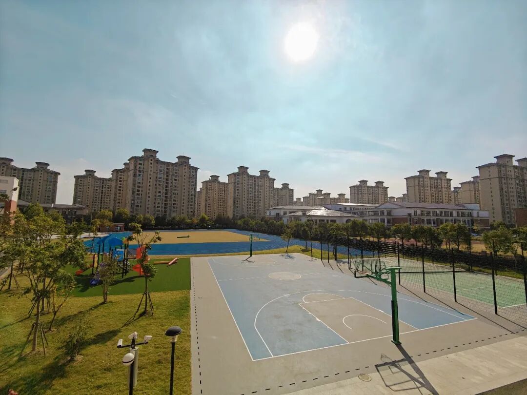 它借用了旁边一所公办学校闲置的初中部校园,因此教学建筑略显传统,但是操场绝对够大,网球场、足球场、篮球场、室内体育馆齐全,有真正的草坪,开运动会的时候,老校区的2-5年级哥哥姐姐们也想到新校区来一起开呢。