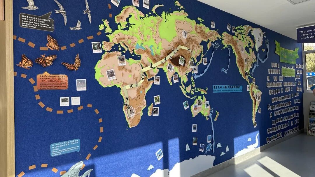 走进教学楼内部,会发现“一所好的学校,墙壁都会说话”,比如我觉得整个校园最震撼的就是这张立体世界地图,它揭示了尚音的孩子都能“自信熟练地用中英双语上知天文下至地理”的秘密:
