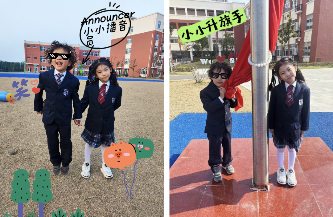 原来,每个小朋友都有机会担任播音员和升旗手!Faye妈妈就惊喜地记录过入校时还很敏感内向的女儿,担任小播音员和升旗手的那一天可真的太骄傲了: