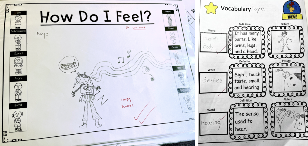 而且1年级开学的探究课马上就开始学习“我的情绪”,Faye一下子就学会了好多管理情绪的方法,跟妈妈说起来如数家珍: