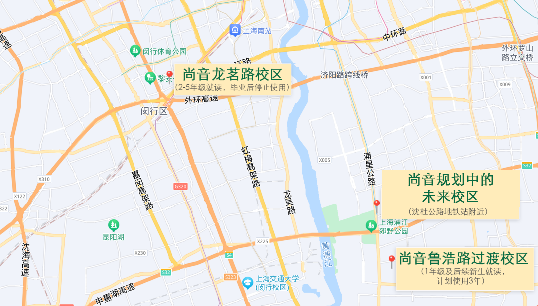 浦江校区:上海市闵行区鲁浩路 310 号(2024届新一年级和新六年级将就读于浦江校区)