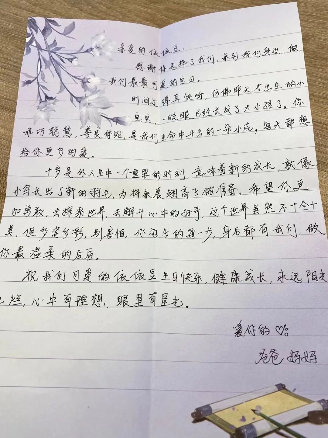 十年光阴,弹指一挥。孩子们,似乎昨天你们还是嗷嗷待哺的婴儿,今天已成长为风华正茂的少年!十岁,像鲜花一般美好,像黄金一般珍贵;十岁,洋溢着童年的欢笑,浸润着成长的喜悦。你们,是第一次做孩子;而我们,也是第一次做父母。相识十年,我们悉心地呵护并教育你,你也像镜子一样让我们更好地认识自己。希望在未来的日子里,我们友好相处,合作愉快,共同进步,互相多多指教。