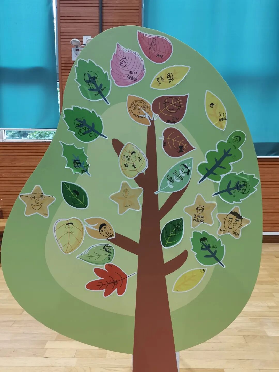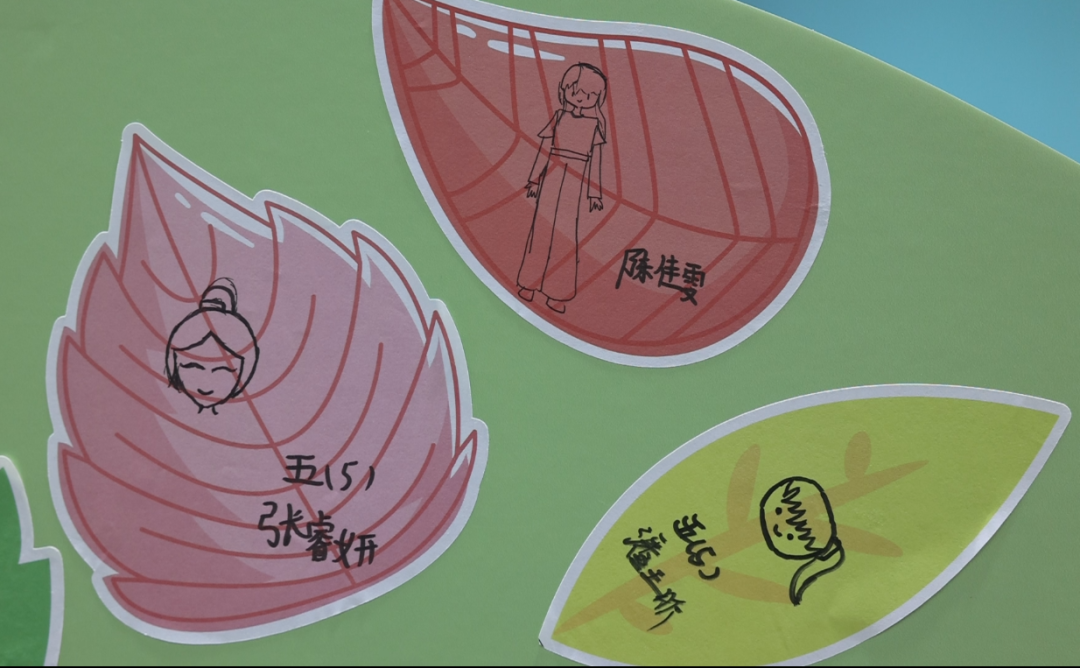 毕业生们在成长树叶上画上自己的自画像,为“毕业树”装点上自己童年的模样,在曹小留下自己的成长痕迹。
