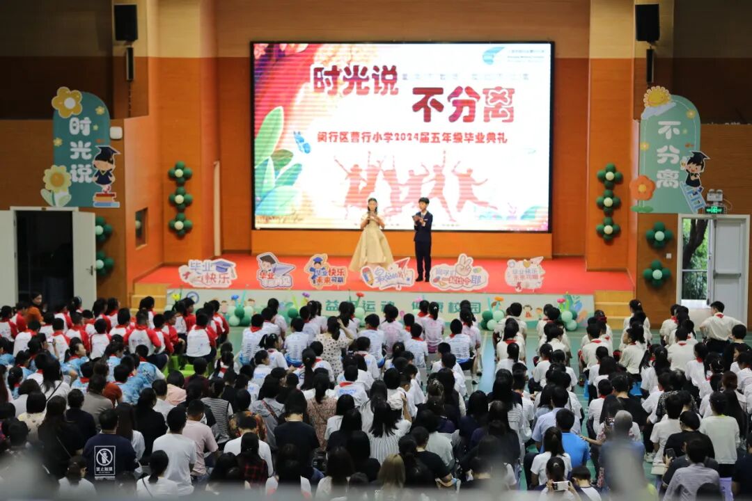 六月蝉鸣又起,青衿之志可期,又是一年骊歌起。6月26日上午,闵行区曹行小学五年级毕业典礼“时光说 不分离”在萌毓馆二楼举行。