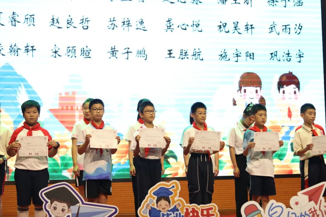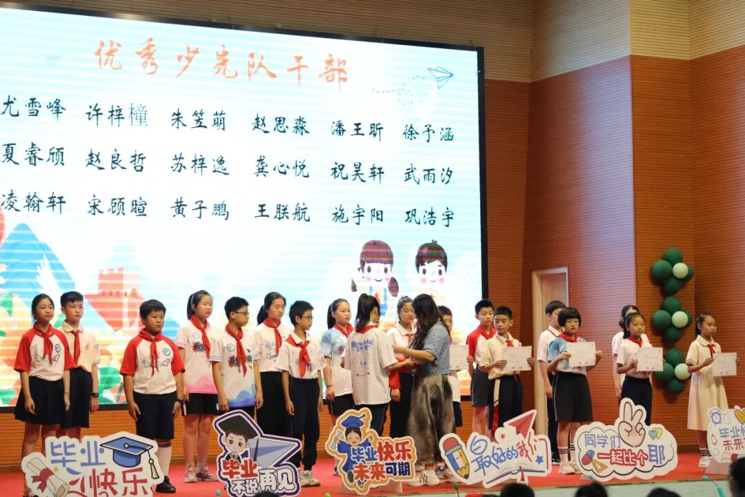 在2024届五年级毕业班中有一群德智体美劳全面发展,刻苦学习,用努力奋斗书写自己的青春价值的学生。他们乐于助人,为身边的同学答疑解惑,用自己的力量感染他人。学生发展部主任丁颖佳老师和大队辅导员马婷婷老师为他们颁发了“优秀毕业生”和“优秀队干部”称号。