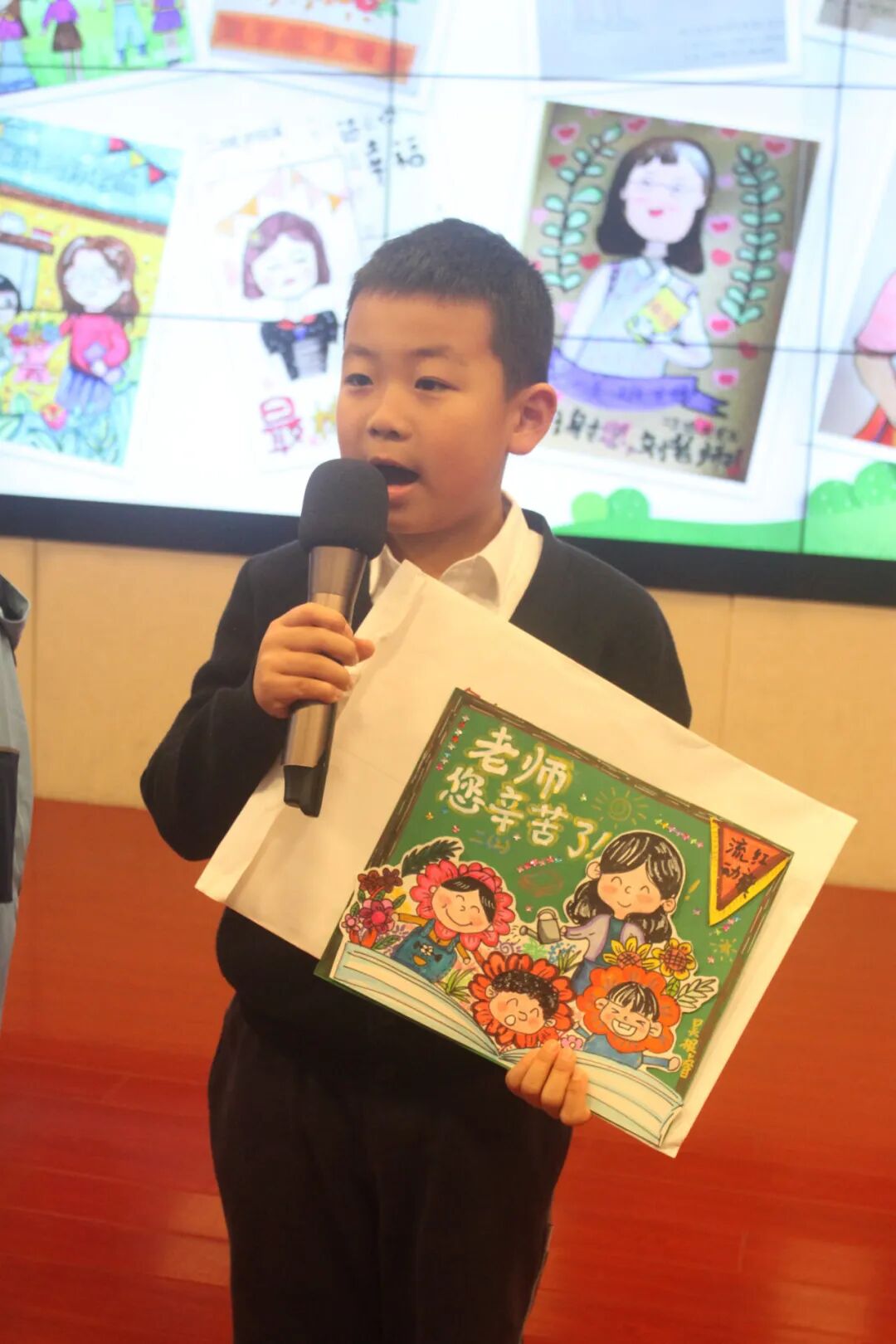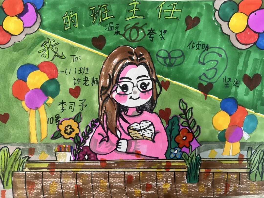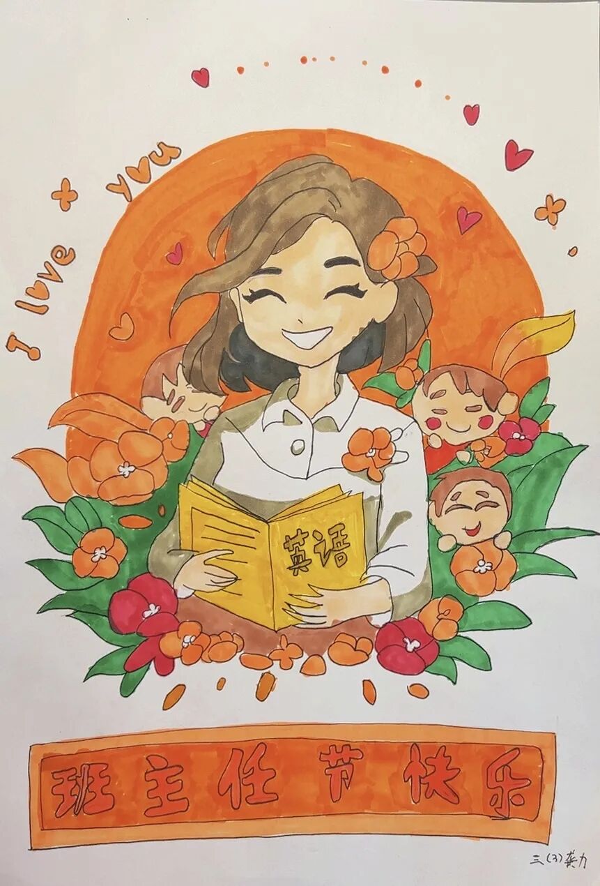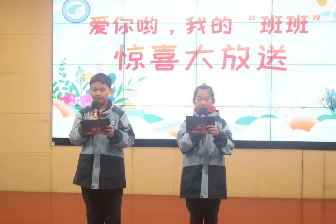 学生代表展示自己的画作,并说出自己对“班班”的爱,一声声“爱你哟”,让班主任老师们的内容洋溢着幸福。