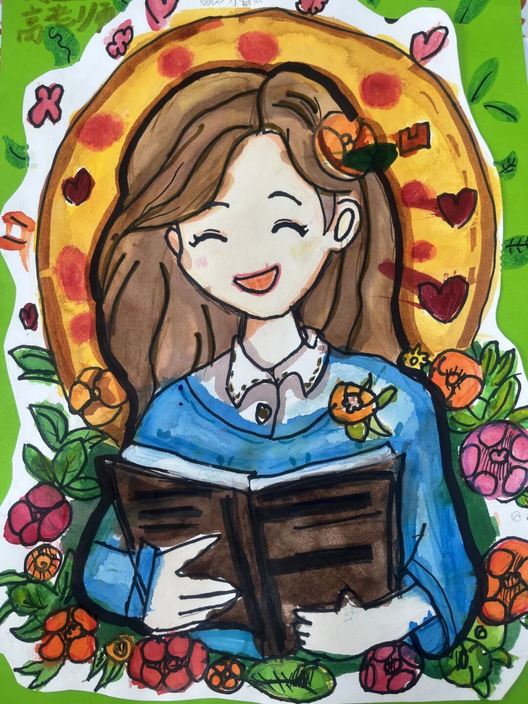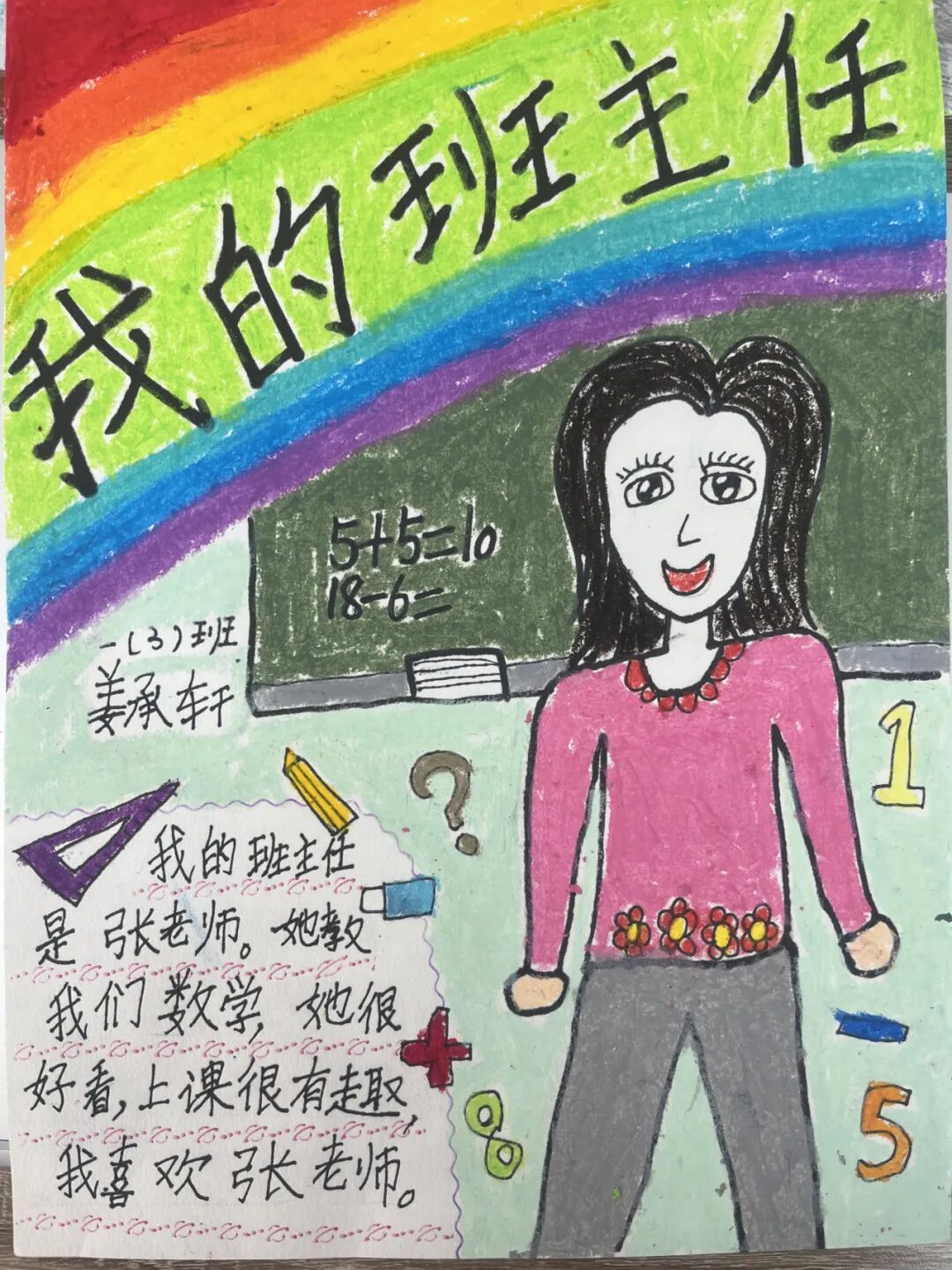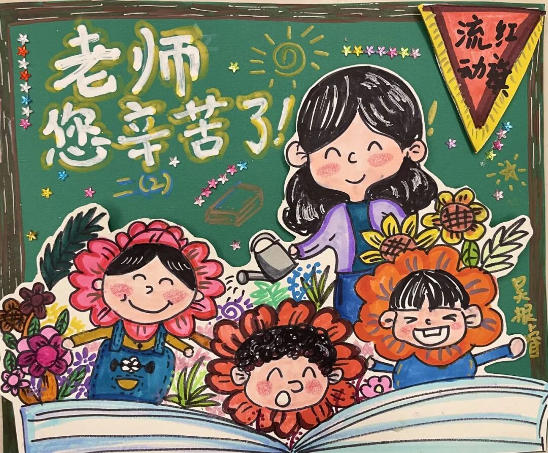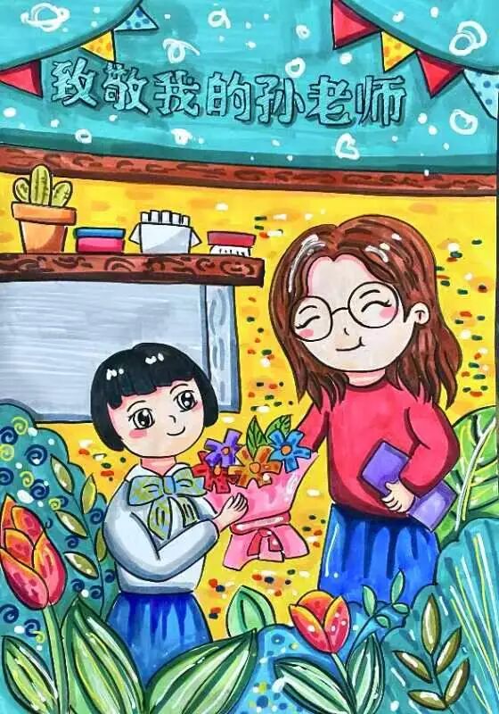 学生代表展示自己的画作,并说出自己对“班班”的爱,一声声“爱你哟”,让班主任老师们的内容洋溢着幸福。