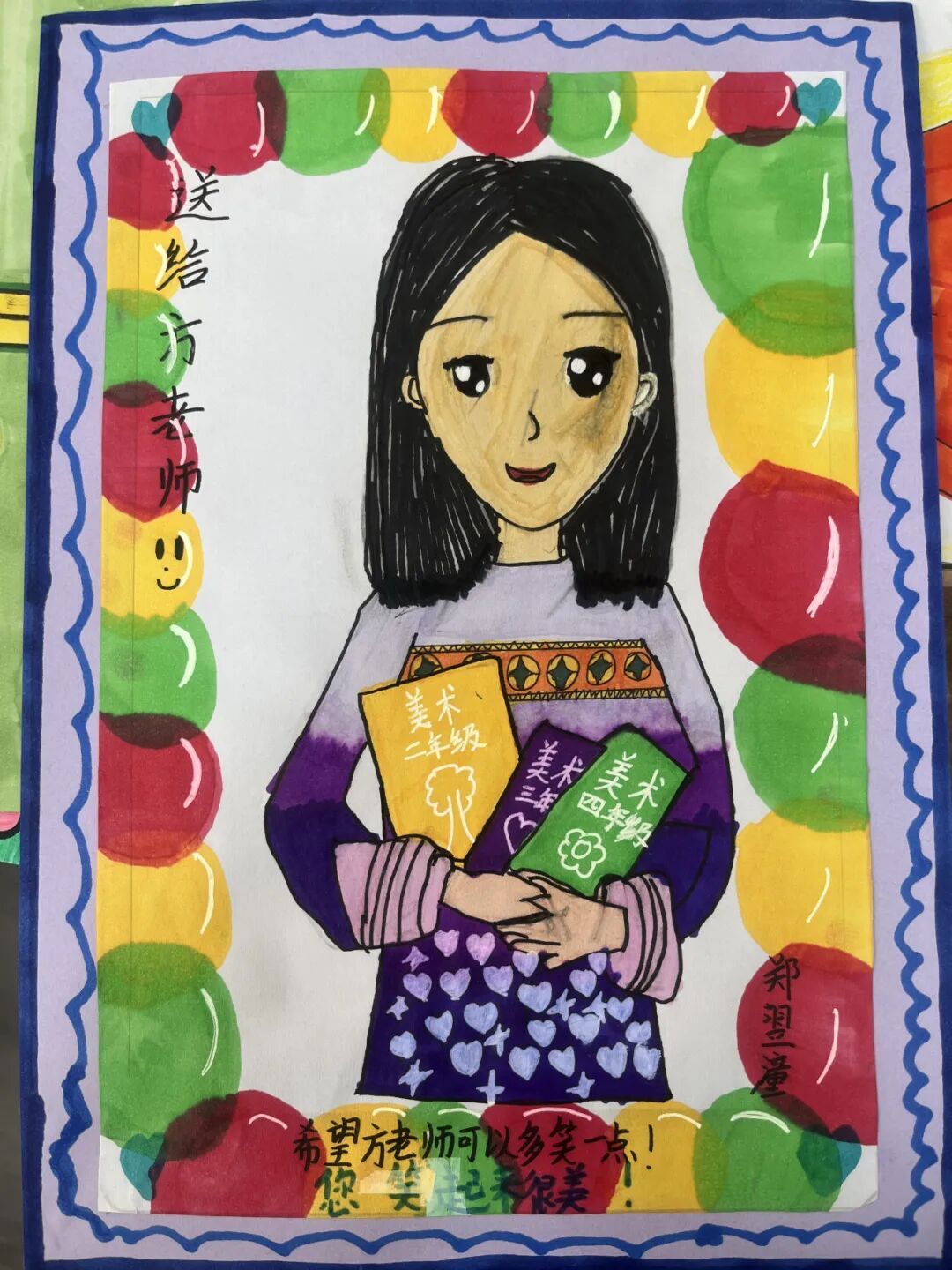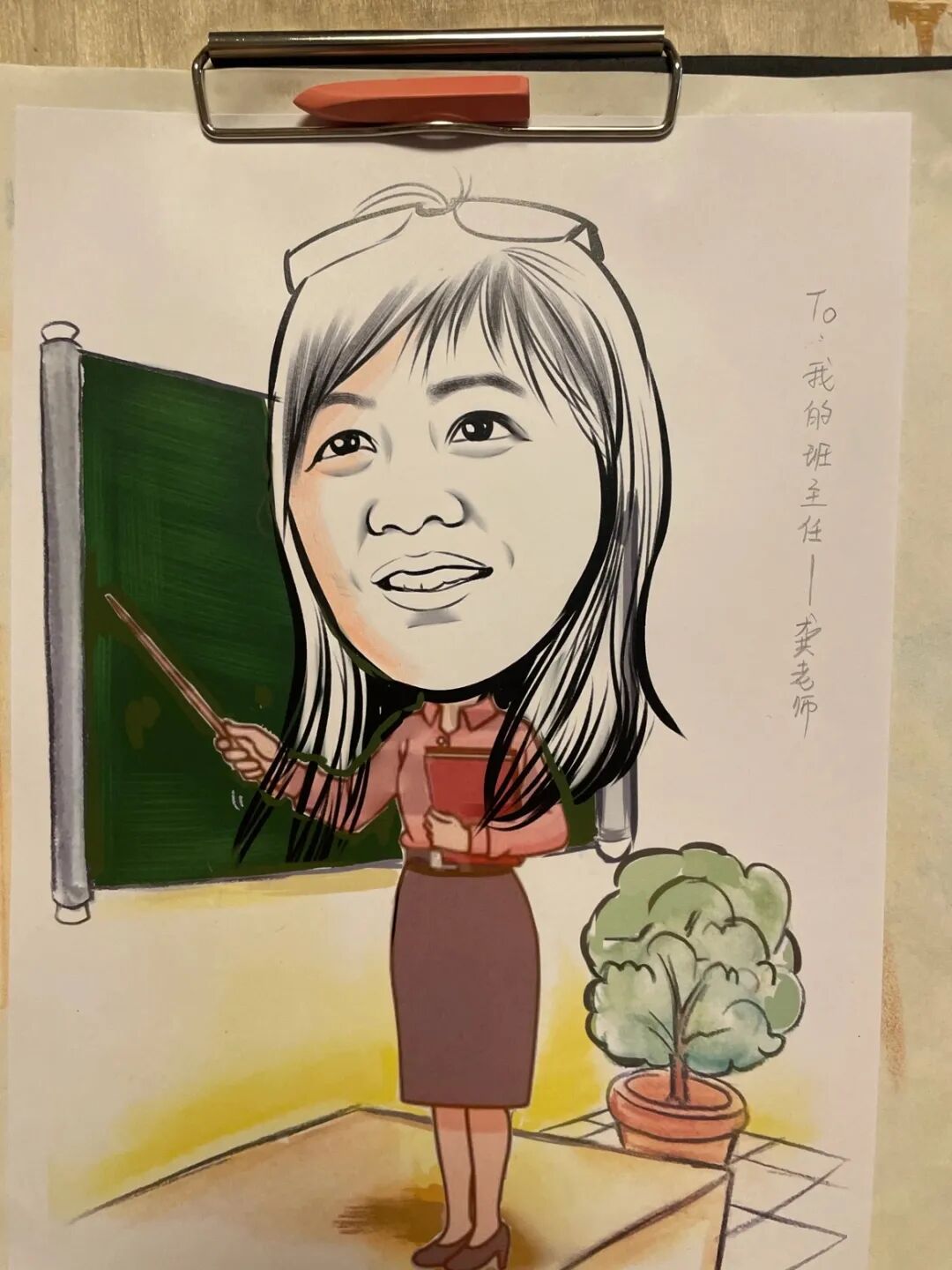 仪式上,学生们来了一次“秘密行动”,原来,他们早已准备好了暖心惊喜想要送给自己的“班班”,快看,学生们亲手绘制的班主任肖像画是多么生动!