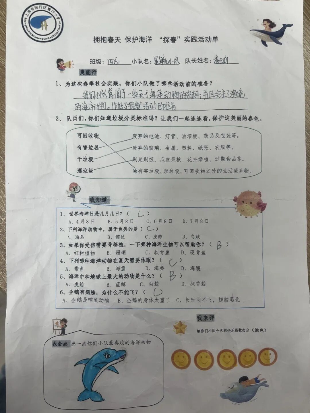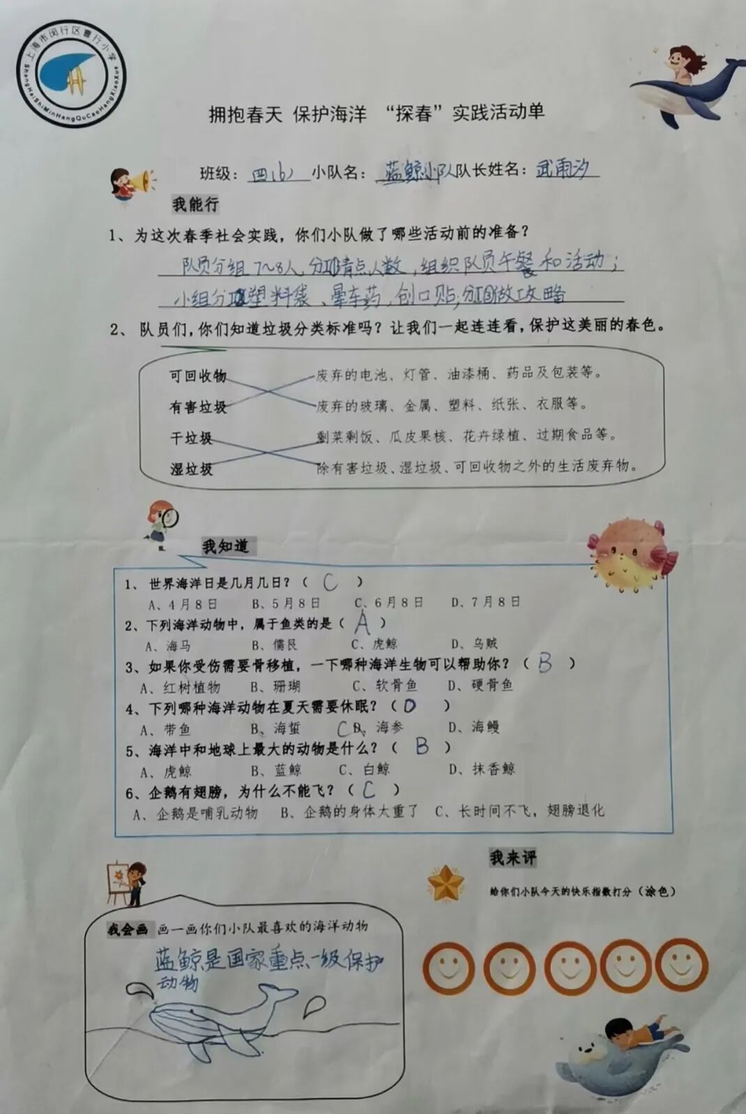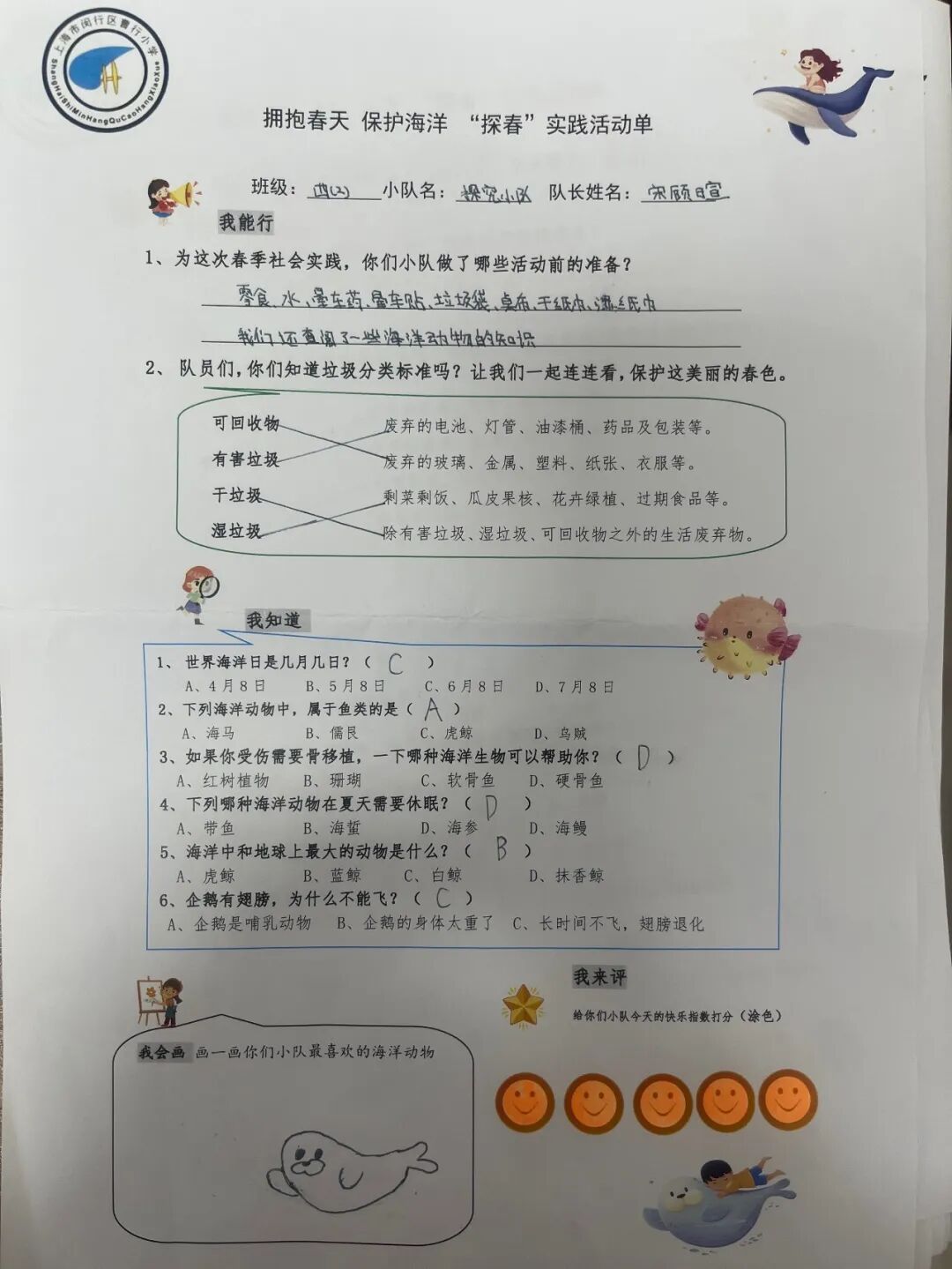 在出发前,各小队拿到了一份“探春”实践探究单。探究单分为“我能行”、“我知道”、“我来画”、“我来评”4个版块,在探究单的指引下,小队实践活动有组织、有要求、有内容、有评价。在玩中涨见识,在玩中见文明。