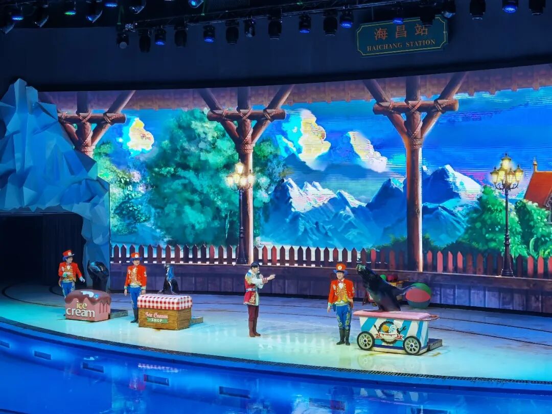 同学们乘上列车去和海狮嬉戏,看海狮表演套圈,顶球等绝活,各种表演真是精彩纷呈!