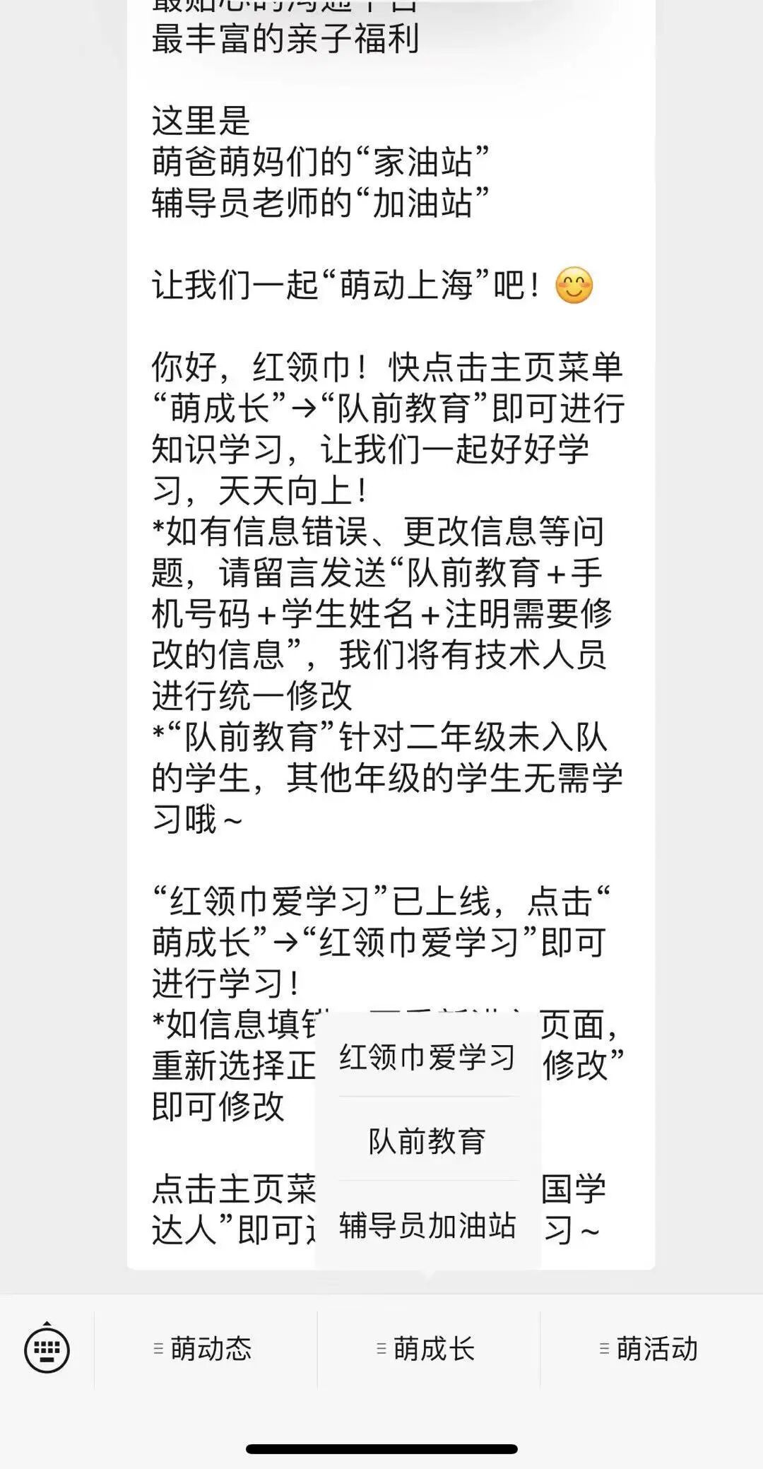 关注“萌动上海”公众号——底部菜单栏选择“萌成长”——红领巾爱学习