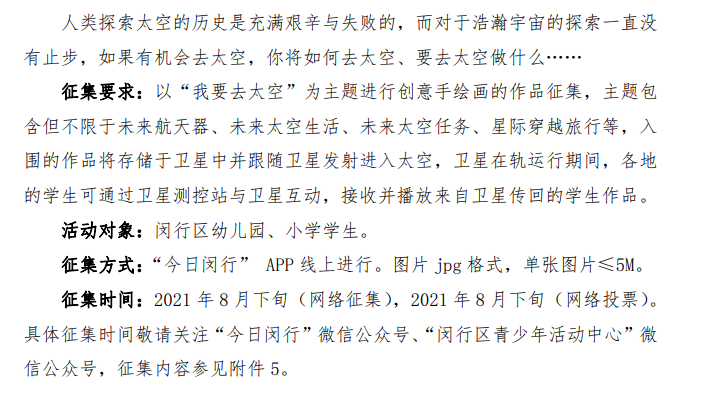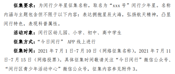 闵行少年星科普卫星名称征集
