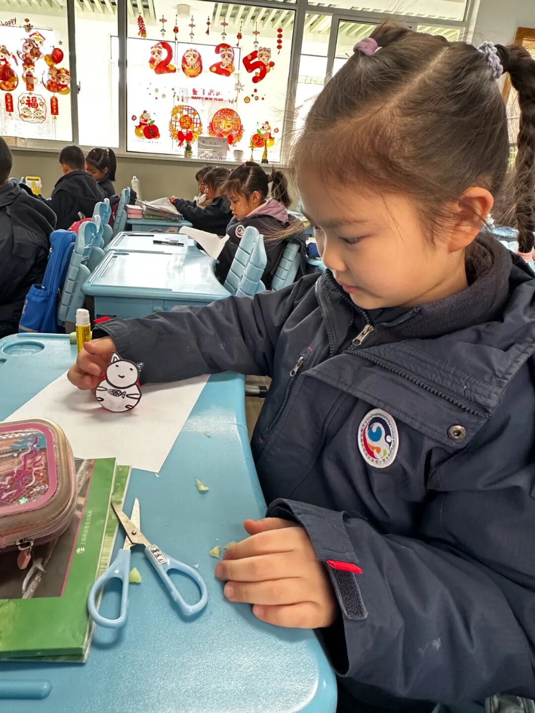 一年级的“小乐乐”们在老师的指导下用彩色卡纸、剪刀、胶水等简单工具将普通的白纸变成了充满精美的家庭相框。每一个作品都是他们想象力的体现,也锻炼了他们的动手能力。