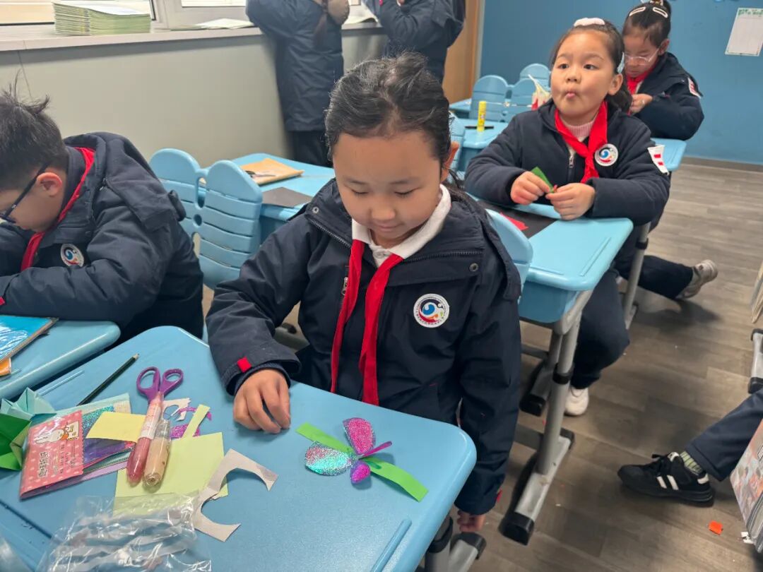 三年级的“小乐乐”们化身创意小能手,拿起彩纸、吸管、回形针等材料制作出“会动的昆虫”。这些栩栩如生的作品仿佛是从大自然中走来的精灵,让他们认识到了生物的拟态和保护色现象,明白这些特征对昆虫生存的意义。