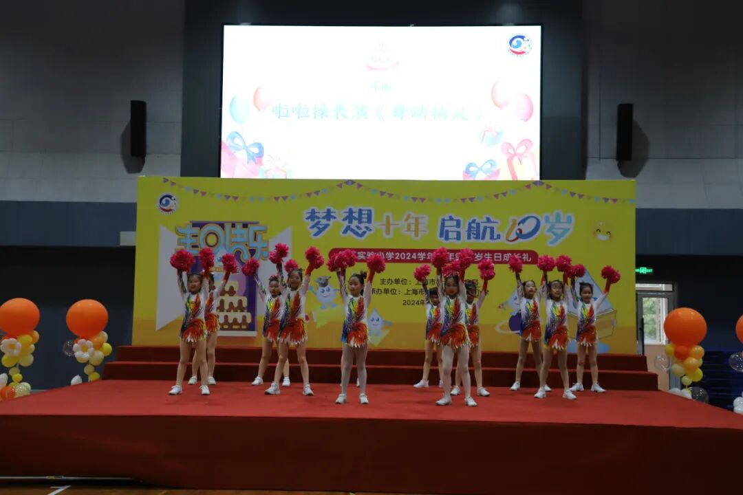 一曲热情洋溢的啦啦操表演《舞动精灵》如同一团燃烧的火焰,瞬间点燃了全场观众的热情,拉开了十岁生日成长礼的序幕,展现了“小乐乐”们蓬勃的生命力和正能量。