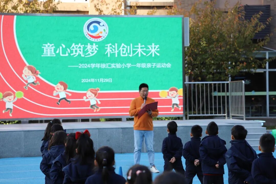 在一片热烈的掌声中,王老师代表徐汇实验小学向所有支持此次运动会的朋友以及陪伴孩子成长的家长们表达了诚挚的感谢。他细数了学校在体育教育方面取得的成绩,并强调了“师生家校同心”共同守护“健康”的理念,共同守护每一位孩子健康快乐成长。