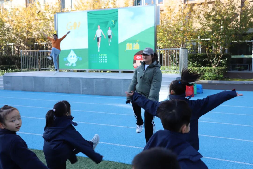 随着动感的音乐响起,孩子们开始了赛前热身。每一个动作都充满了活力,每一次跳跃都像是对天空的挑战,这不仅为接下来的比赛做好了准备,更让整个操场充满了生机与希望。
