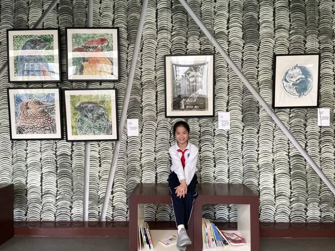 这个变化源自五(4)班的一个小女孩——苏砚冰在学校里举办了自己的一个小型的个人版画展,展示自己的创作成果。这些作品有的描绘了大自然的美丽景色,有的表现了人物的情感世界,还有的融入了传统文化元素,每一幅都充满了独特的艺术魅力。