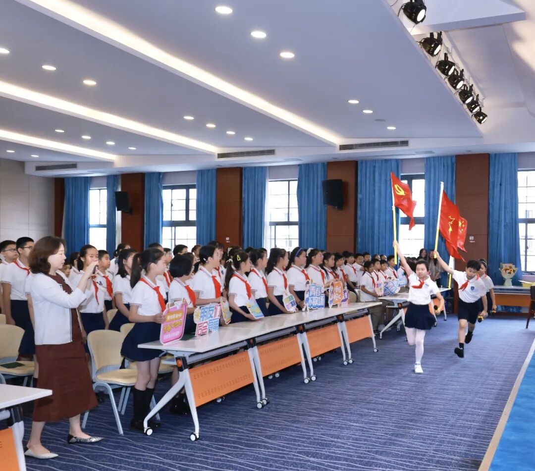 “还记得我们在操场上追逐的身影,在教室里探索知识的模样……”毕业生代表五3中队的彭楠茜同学用清脆的嗓音将回忆娓娓道来。她的发言中既有对同窗情谊的珍视,对师长教诲的感恩,更有“乘风破浪会有时,直挂云帆济沧海”的豪情壮志,引得台下毕业生们频频点头,眼中闪烁着共鸣的光芒。